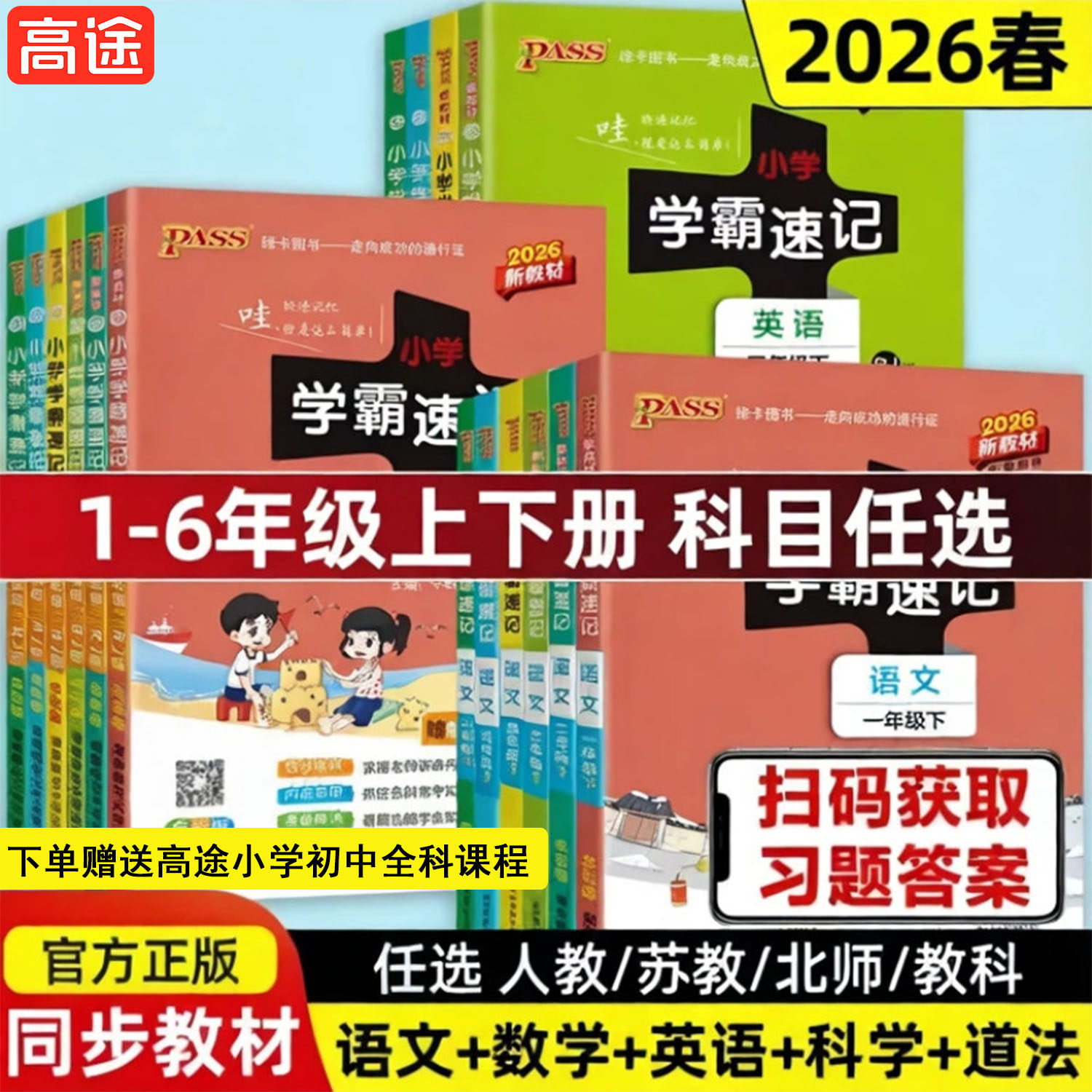 📚 当当网2026春季新版小学学霸速记语文数学英语科学道德与法治一二三四五六年级上下册人教北师苏教教科版课堂笔记同步知识作业本