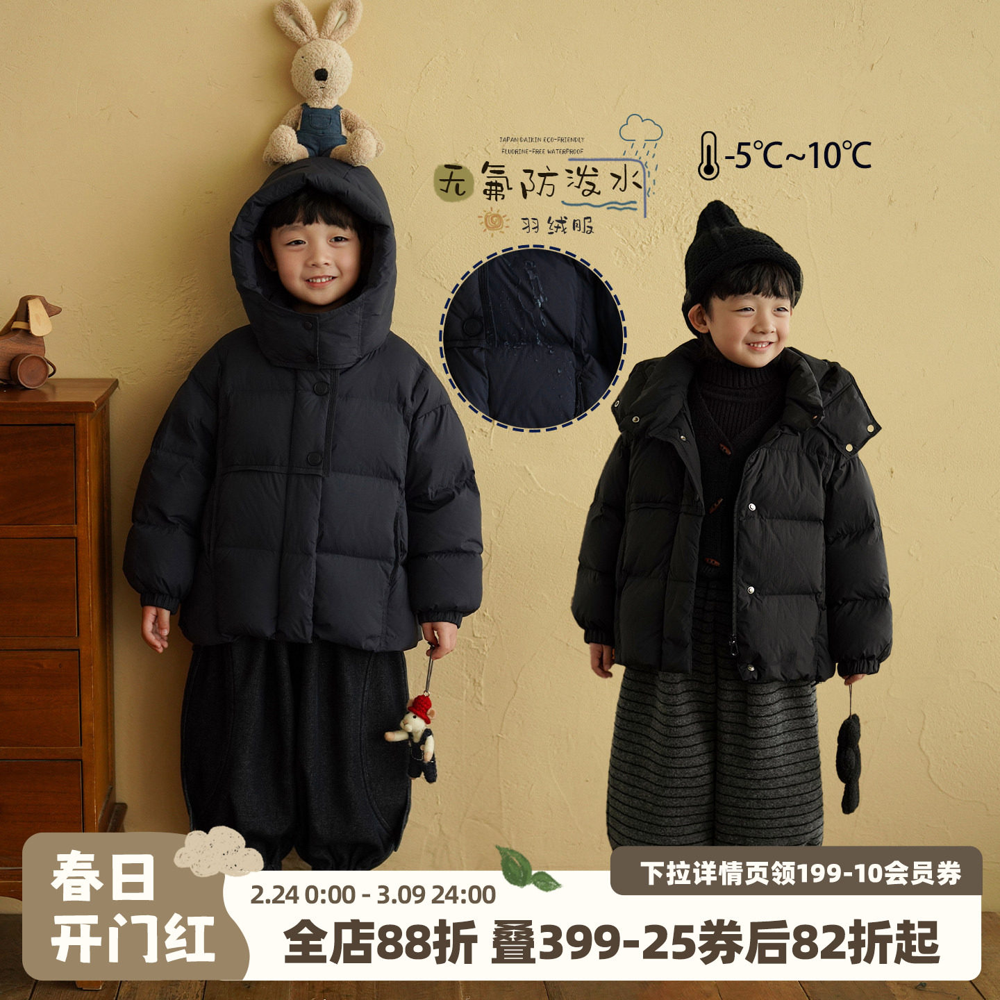 📚 砚台家男童黑色连帽羽绒服2025冬季新款百搭儿童防水外套保暖加厚