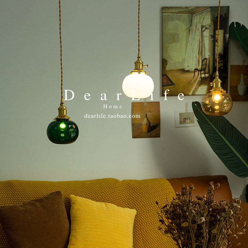 📚 Dearlife暖居日式复古手工玻璃黄铜吊灯民宿酒吧吧台吊灯装饰灯具