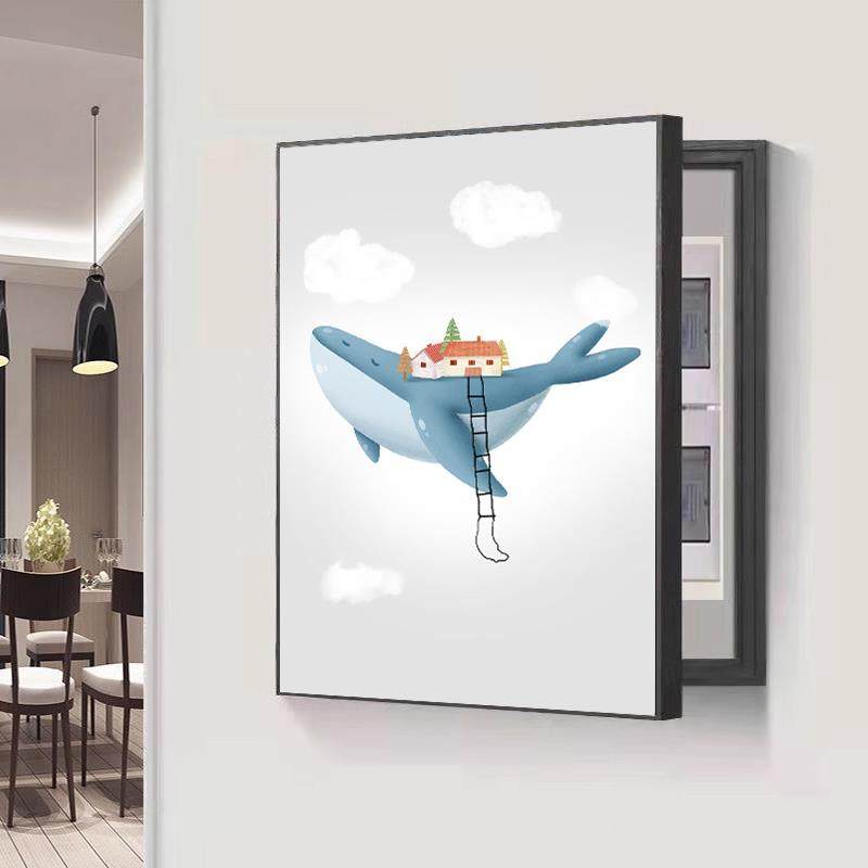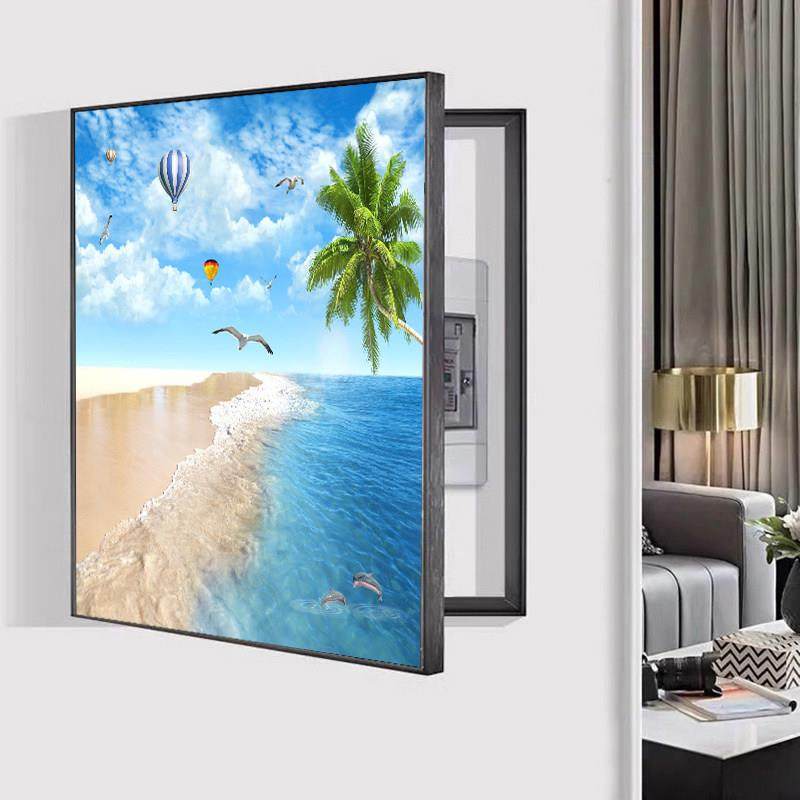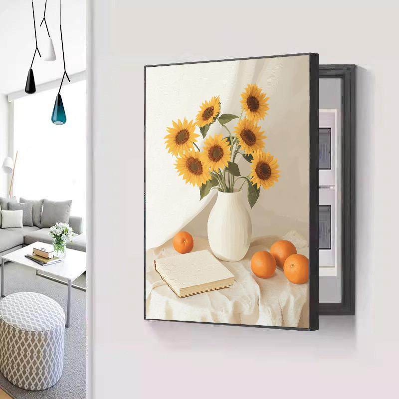 📚 现代简约风竖款侧开门电表箱装饰画免打孔竖版配电箱客厅餐厅挂画
