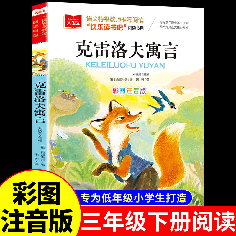 📚 克雷洛夫寓言彩图注音版小学语文必课外阅读经典书目快乐读书吧三年级下册低年级小学生课外书世界经典儿童文学少儿名著童话故事书