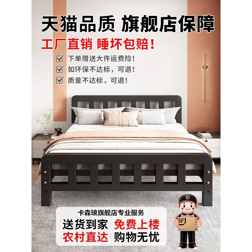 📚 铁艺床双人床家用1.5m单人铁架床不锈钢铁床加粗加厚1米2出租房用