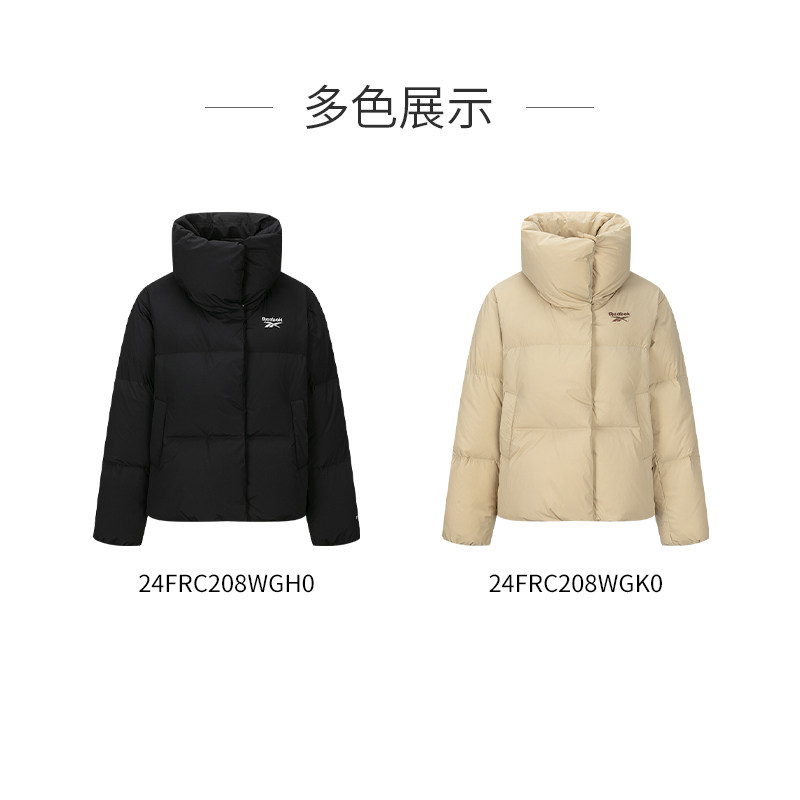 📚 Reebok锐步官方26年新款女子舒适保暖立领纯色羽绒夹克外套