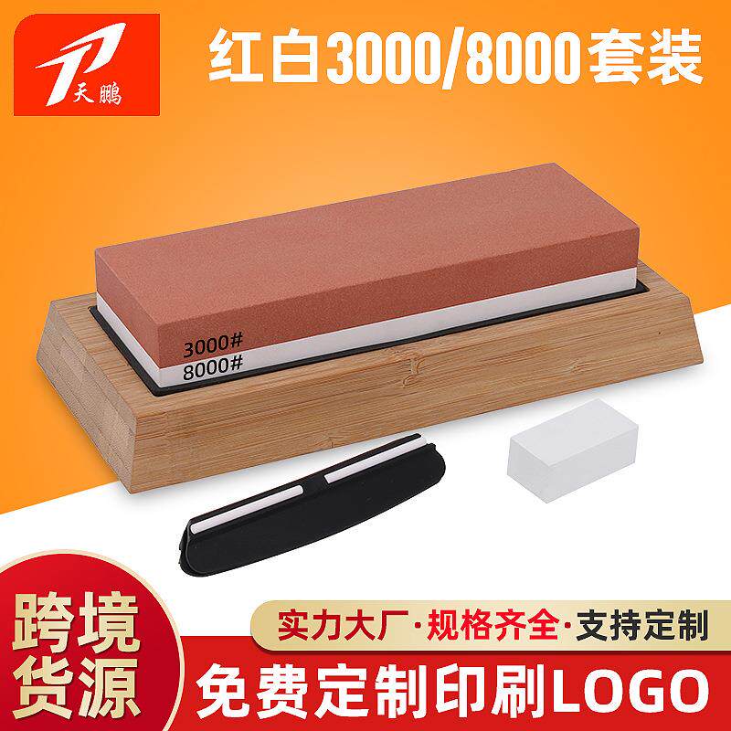 📚 极速厨房家用磨刀石白玉刚油石砥石双面磨石I红白3000/8000带底座