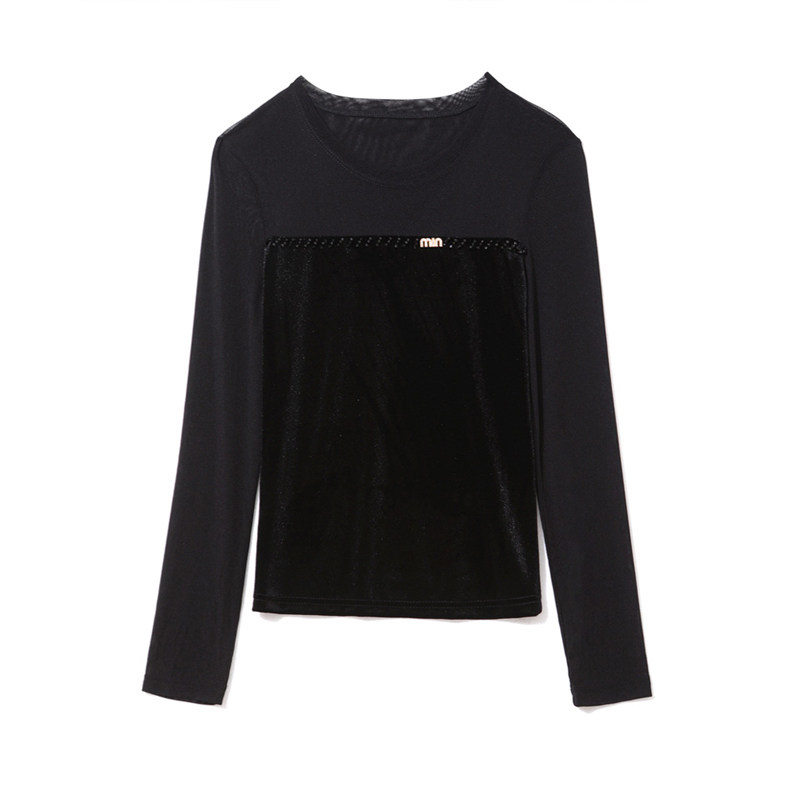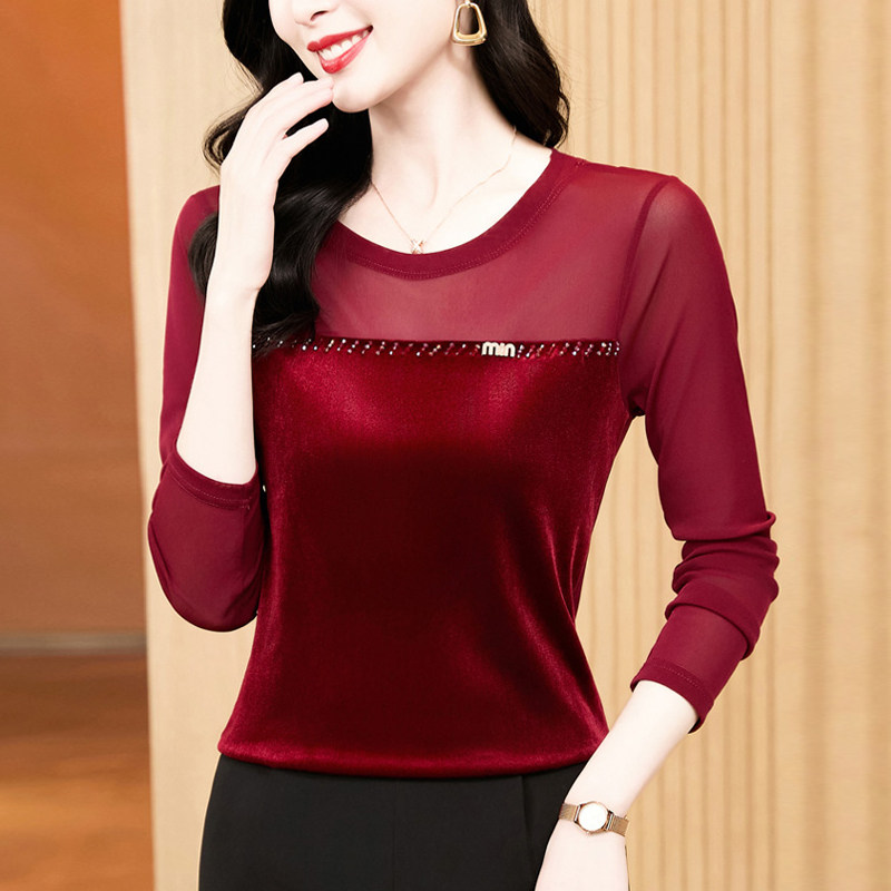 📚 安可拉红丝绒打底衫网纱上衣女2026春秋款遮肚子显瘦t恤气质小衫