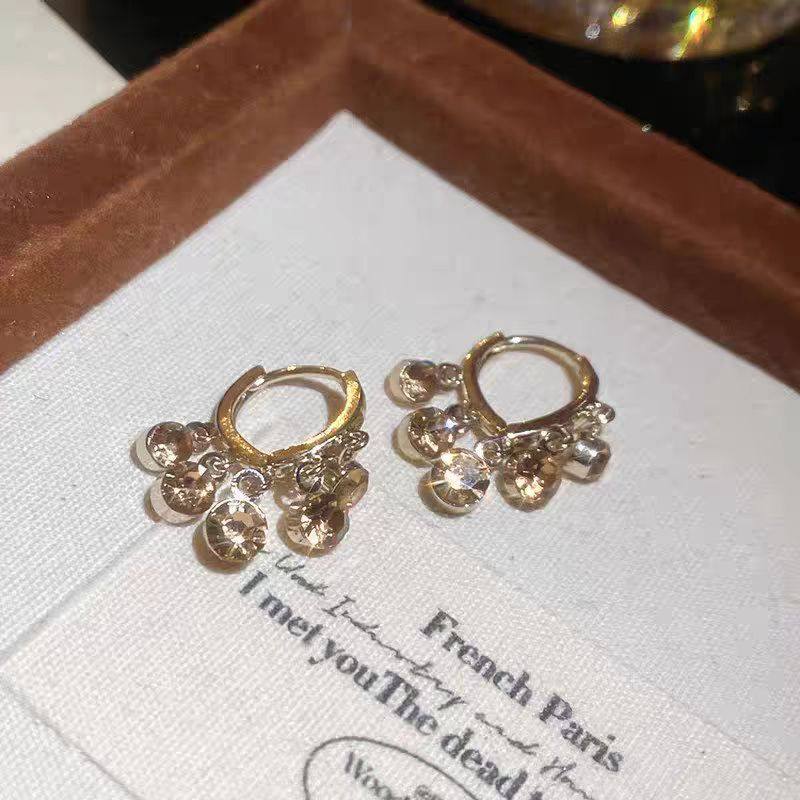 📚 美拉德水钻流苏耳环女2025新款小众设计感耳钉气质耳扣高级感耳饰