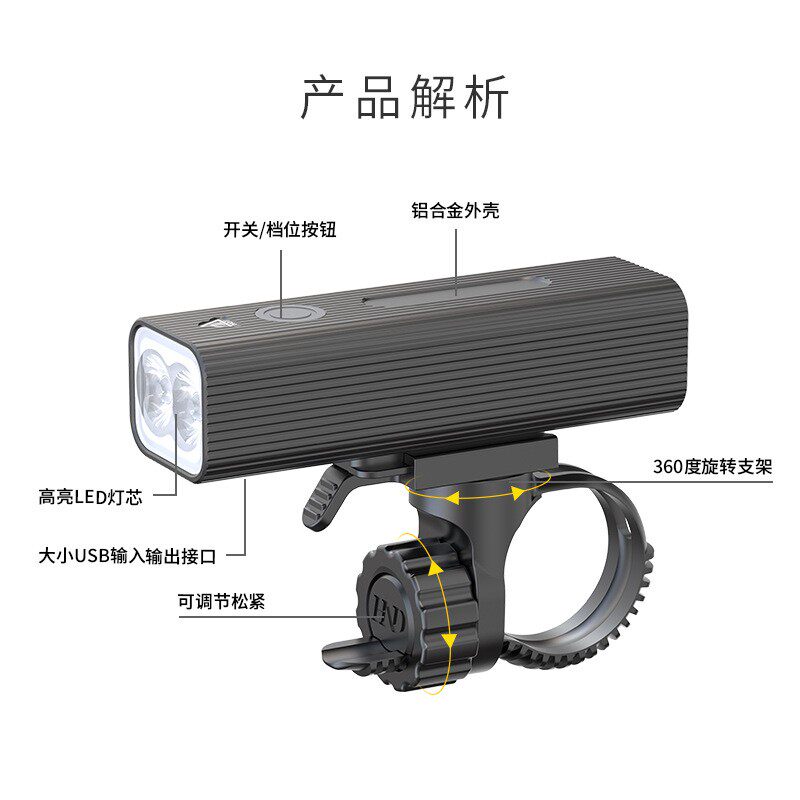 📚 强光自行车前灯超亮夜骑照明灯山地车灯充电式户外探照灯骑行装备