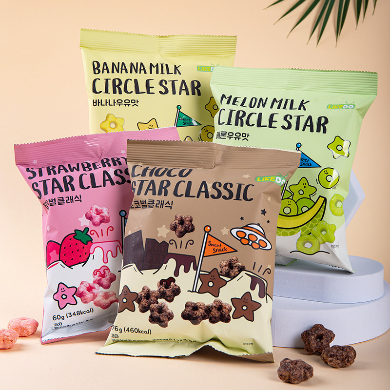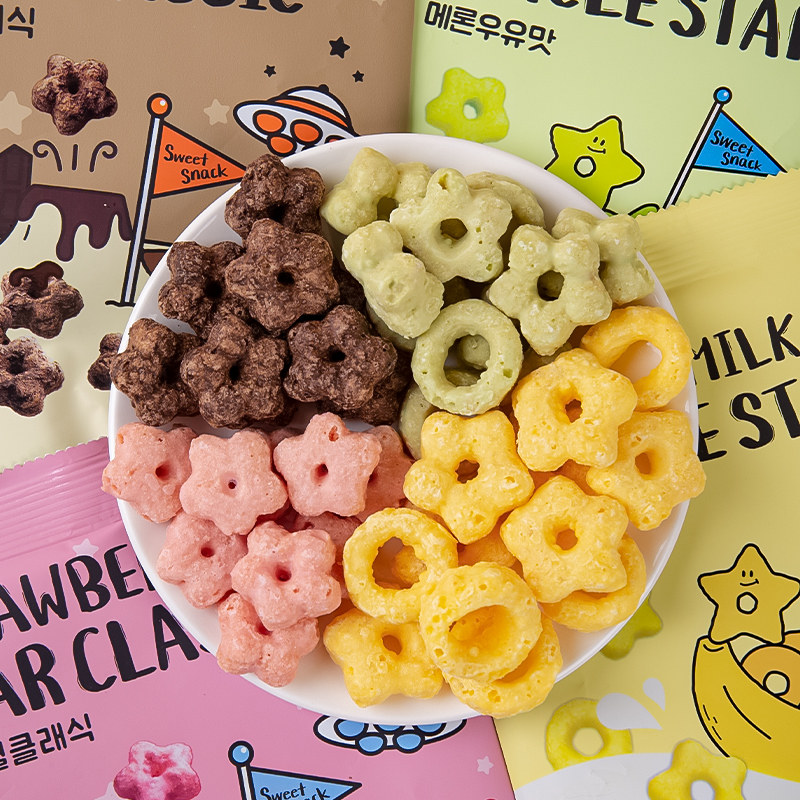 📚 韩国进口涞可草莓味五角星甜甜圈巧克力膨化儿童休闲食品零食小吃