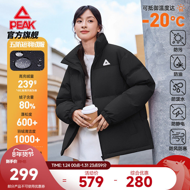 📚 匹克25新款驭雪五防羽绒服丨户外冬季女保暖立领短款棉服运动外套