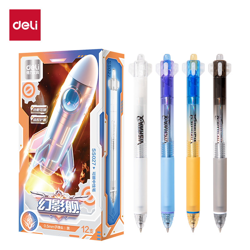📚 得力六边形舰队幻影舰可擦中性笔小学生三年级热可擦晶蓝黑色笔芯