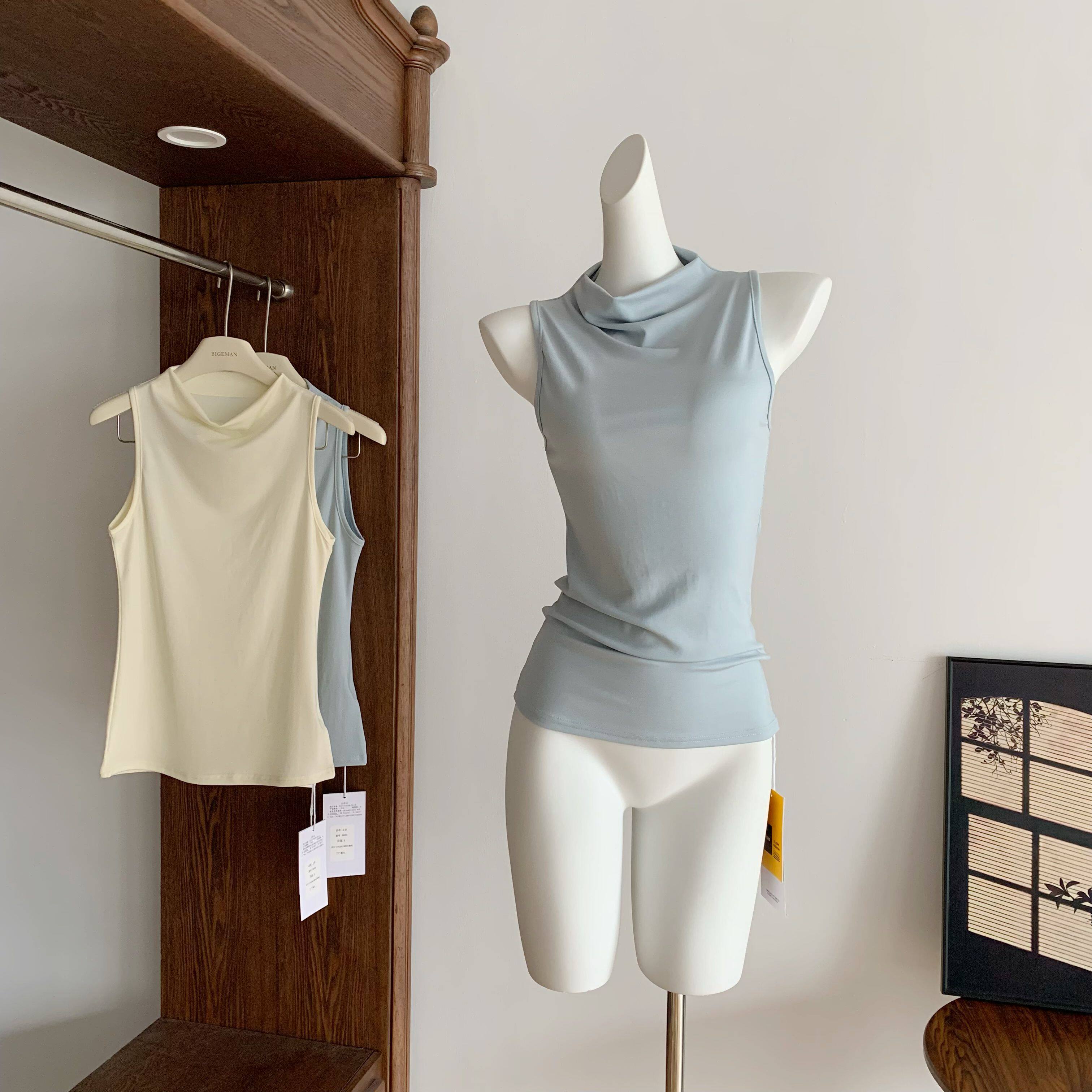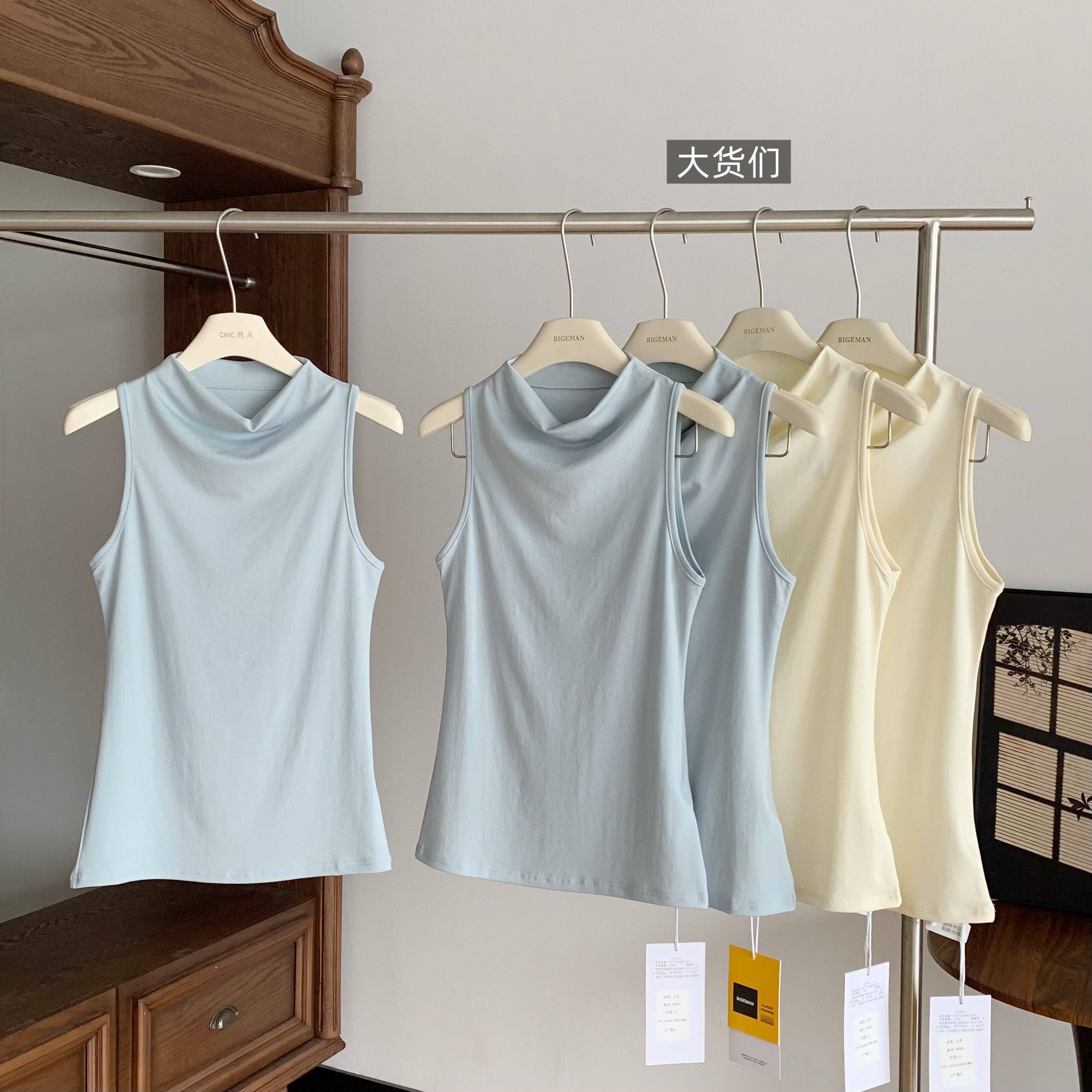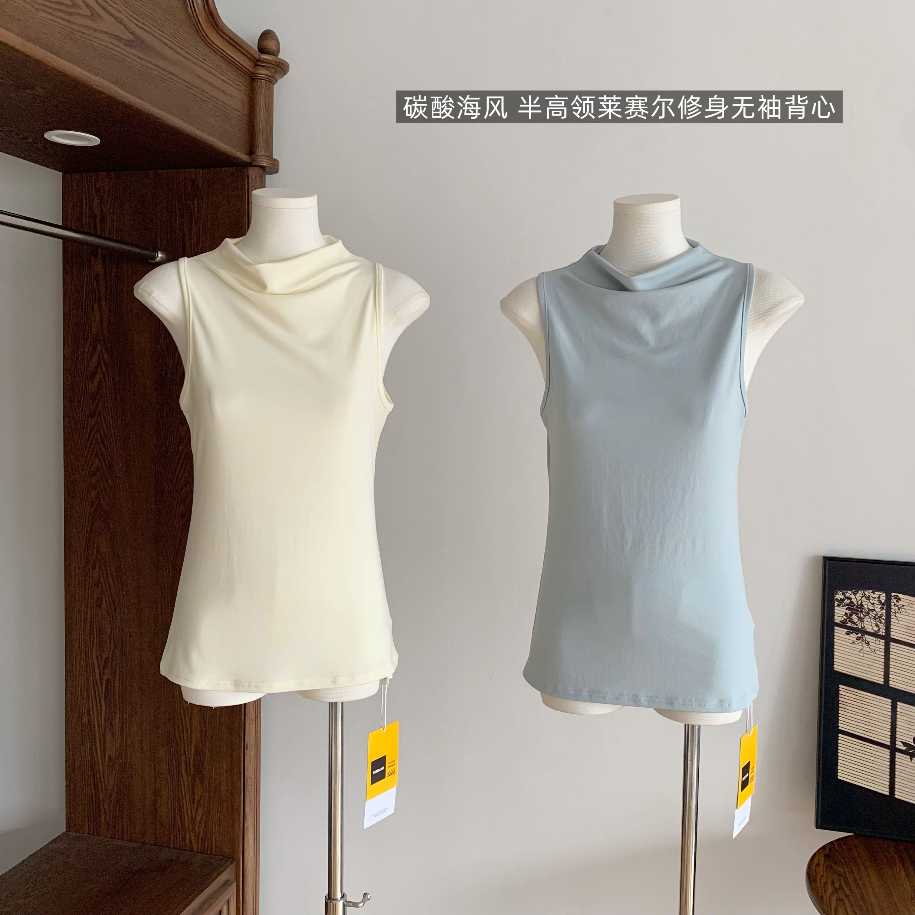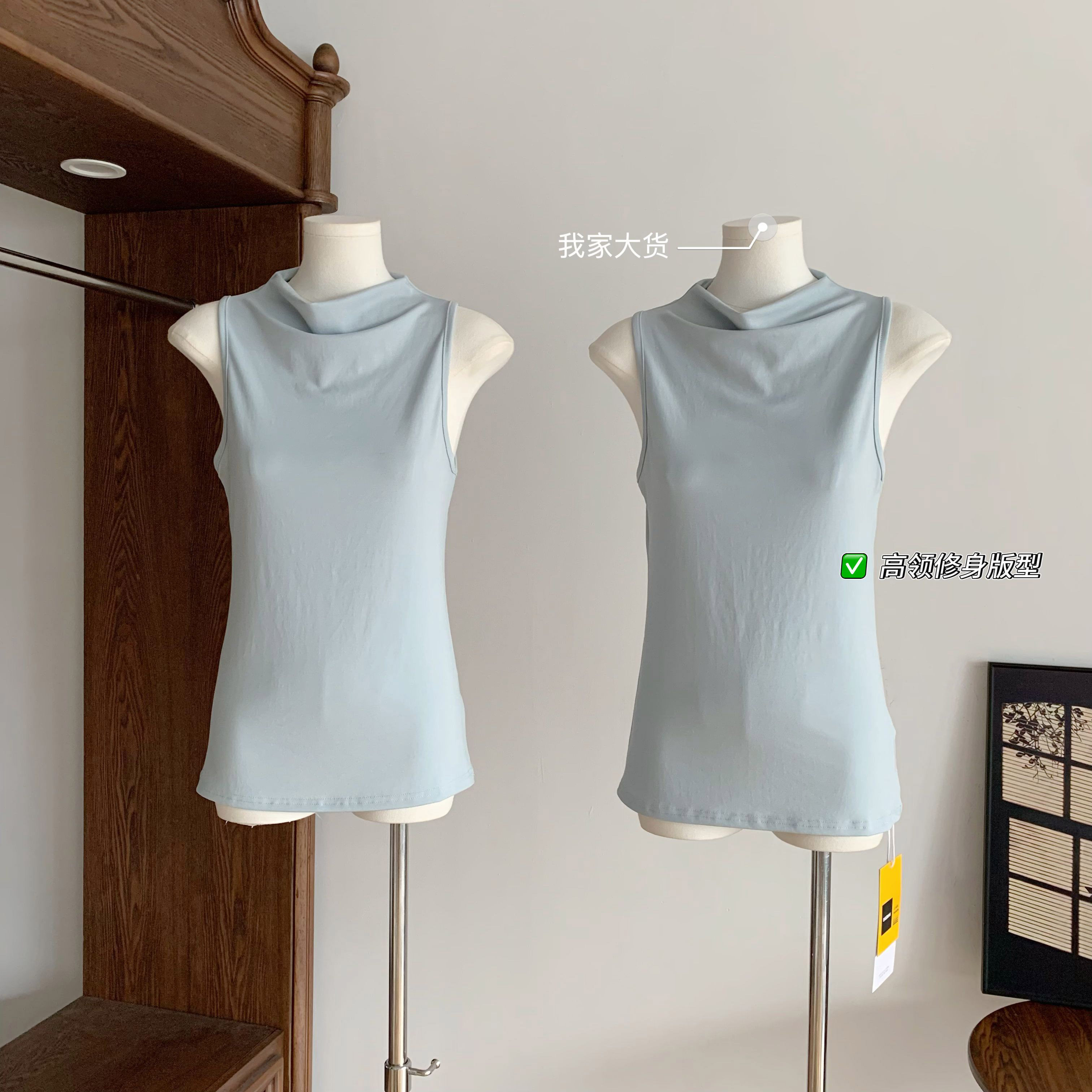 📚 碳酸海风 桑蚕丝奢级配比!半高领莱赛尔修身无袖背心