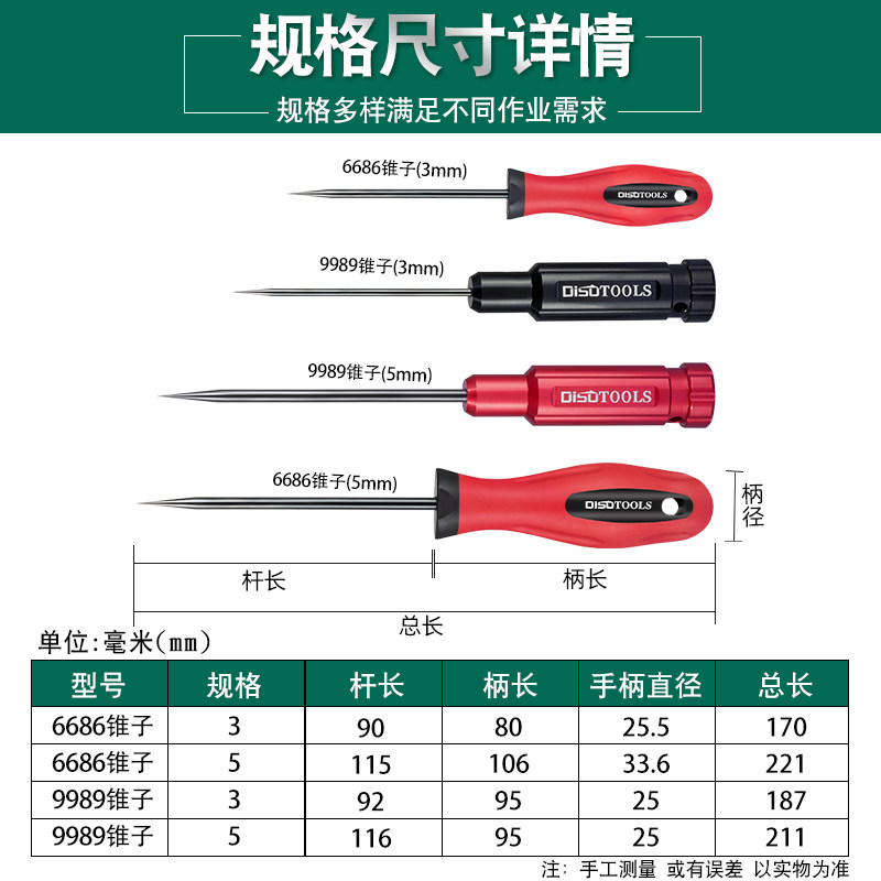 📚 锥子针形实心精钢尖锥布料开孔锥diy手工补鞋缝纫打洞锥皮革钻孔