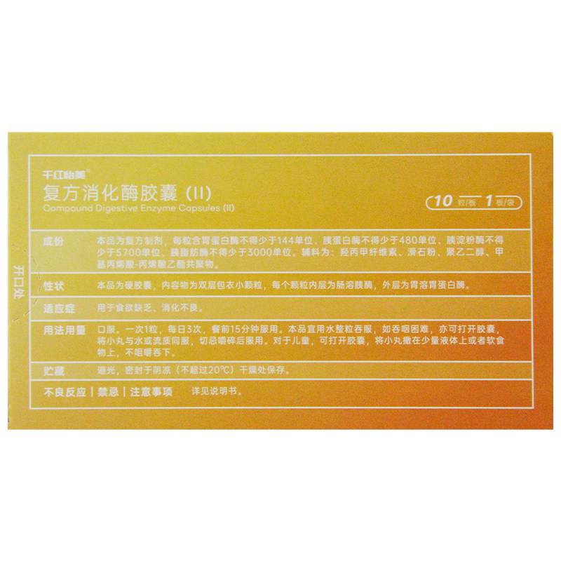 📚 千红怡美 复方消化酶胶囊(II) 10粒/盒 用于食欲缺乏 消化不良
