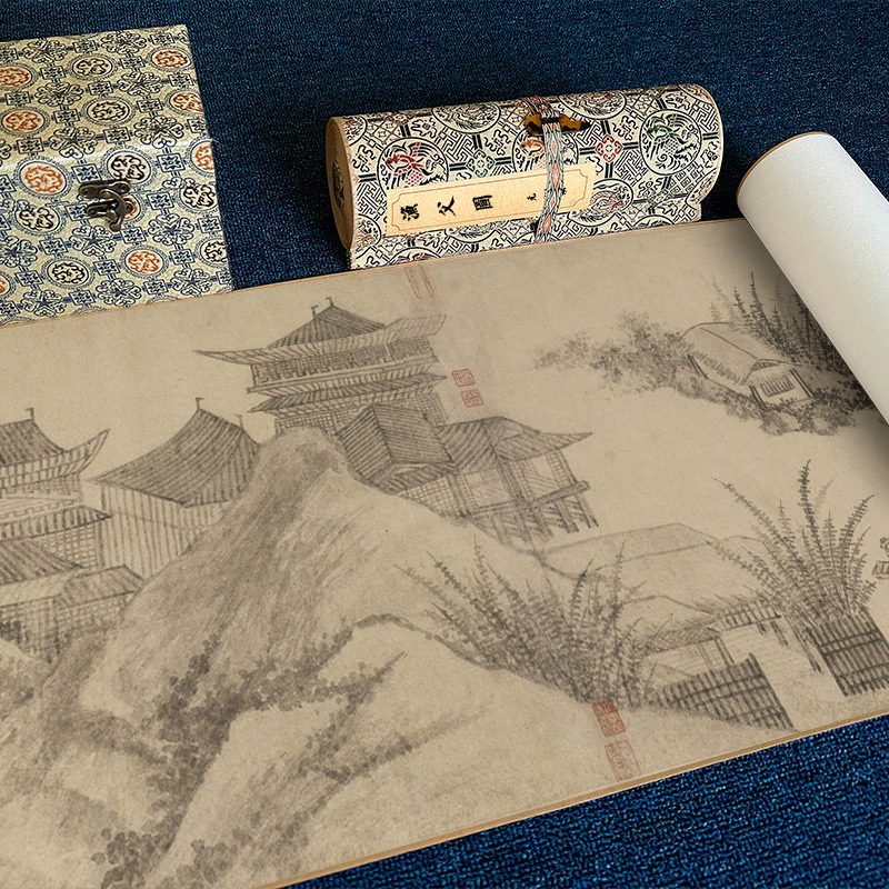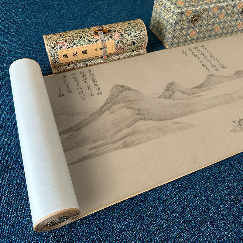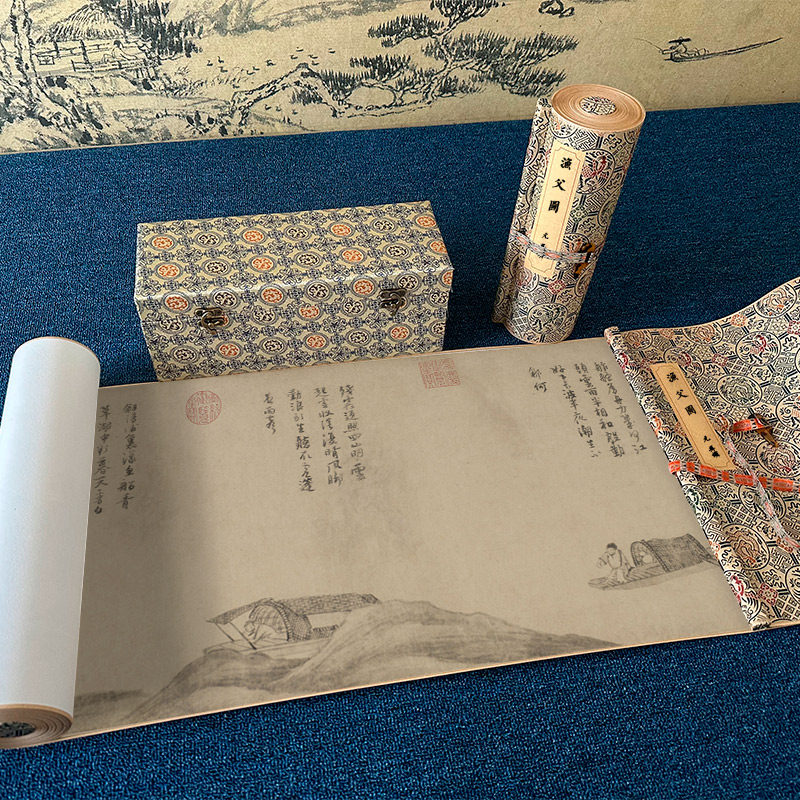 📚 吴镇 荆浩渔父图卷 仿古手卷书画人物山水长卷国画真迹复制装饰画