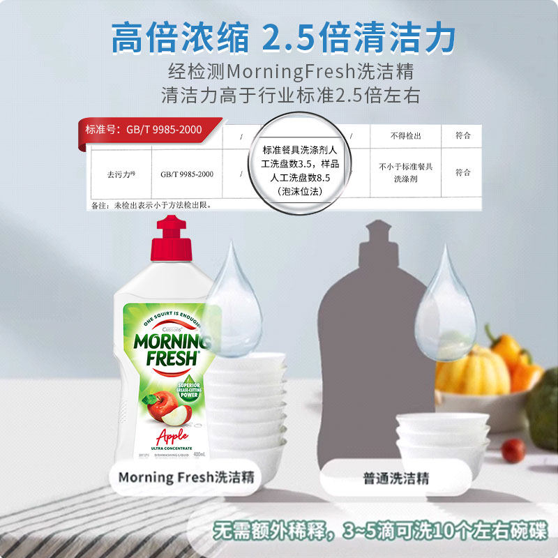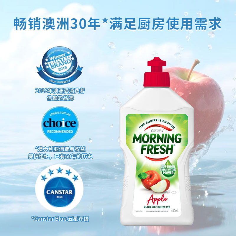 📚 澳洲Morningfresh进口洁精苹果味餐具果蔬洗涤低泡去油清新早晨