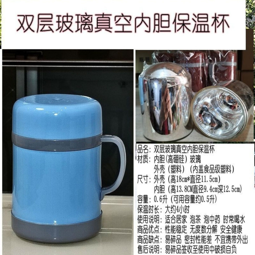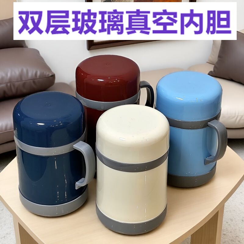 📚 复古带手柄双层真空中式保暖杯老式中药泡茶玻璃内胆真空保温杯