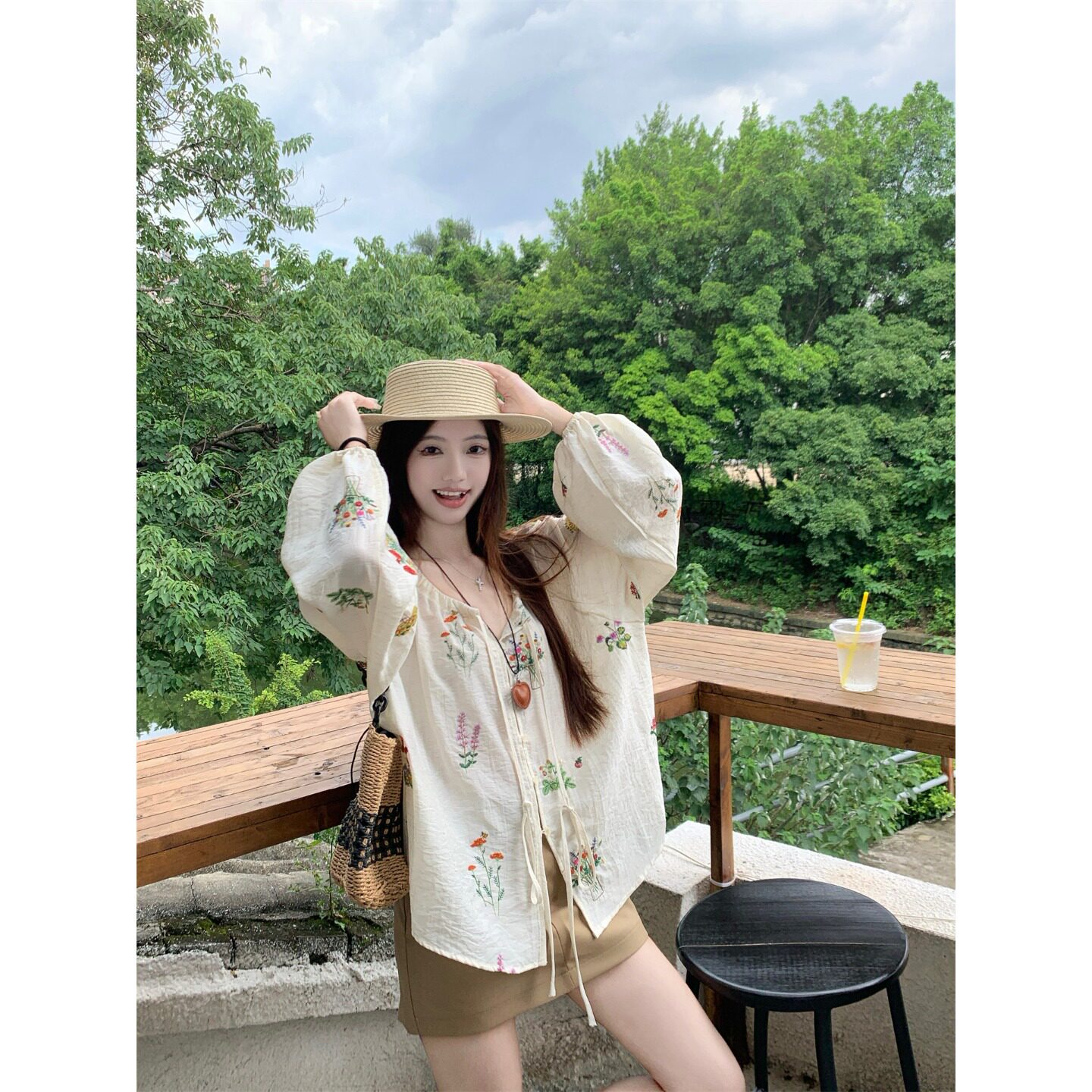 📚 重工刺绣薄款亚麻衬衫女早春宽松慵懒休闲高级感chic别致韩系上衣