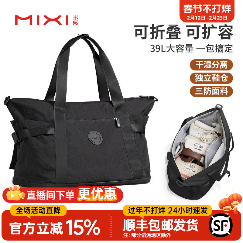 📚 米熙大容量可扩容旅行包女手提短途旅游登机行李袋轻便折叠健身包