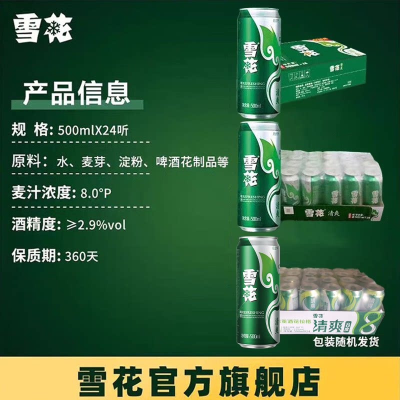 📚 雪花啤酒清爽500ml*24听整箱官方旗舰店 罐装啤酒 包装随机