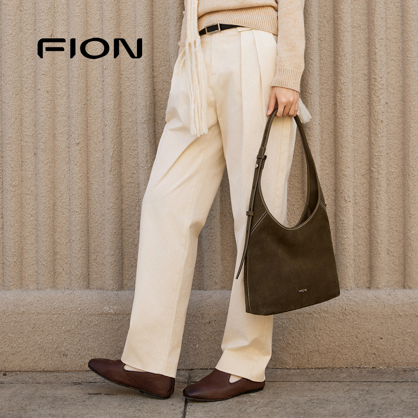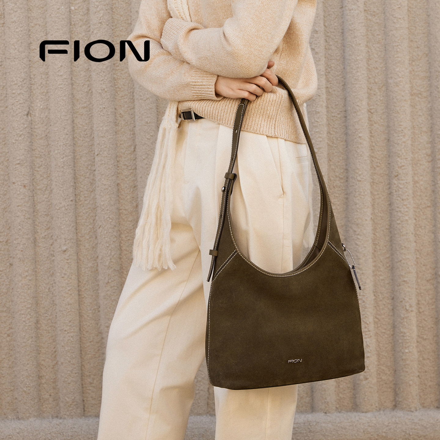 📚 Fion/菲安妮麂皮hobo托特包时尚真皮慵懒感包包女单肩斜挎软包