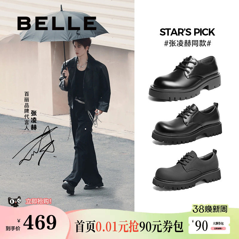 📚 张凌赫同款百丽男鞋厚底增高大头德比新郎婚鞋男士正装皮鞋A1434A