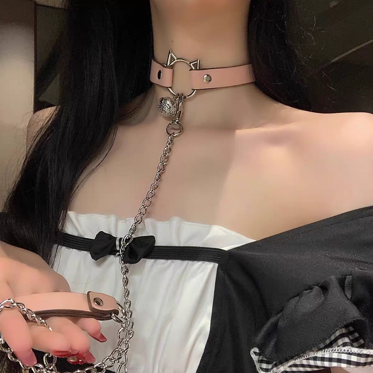 📚 铃铛项圈女小狗choker颈圈男生牵引绳狗链m女性感风脖环K9狗链子