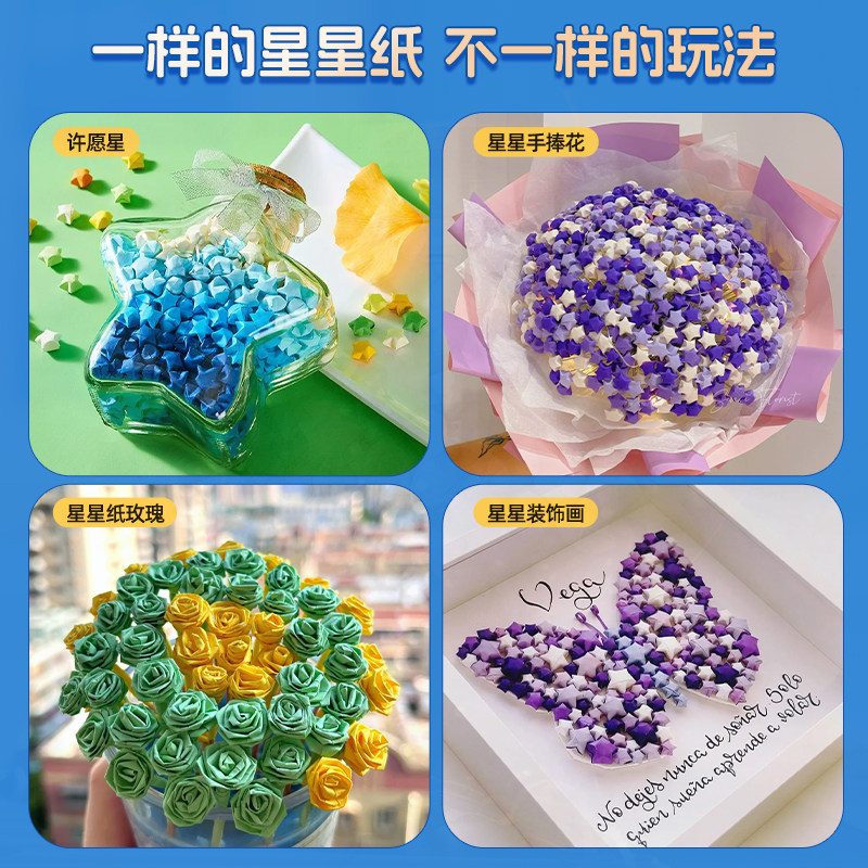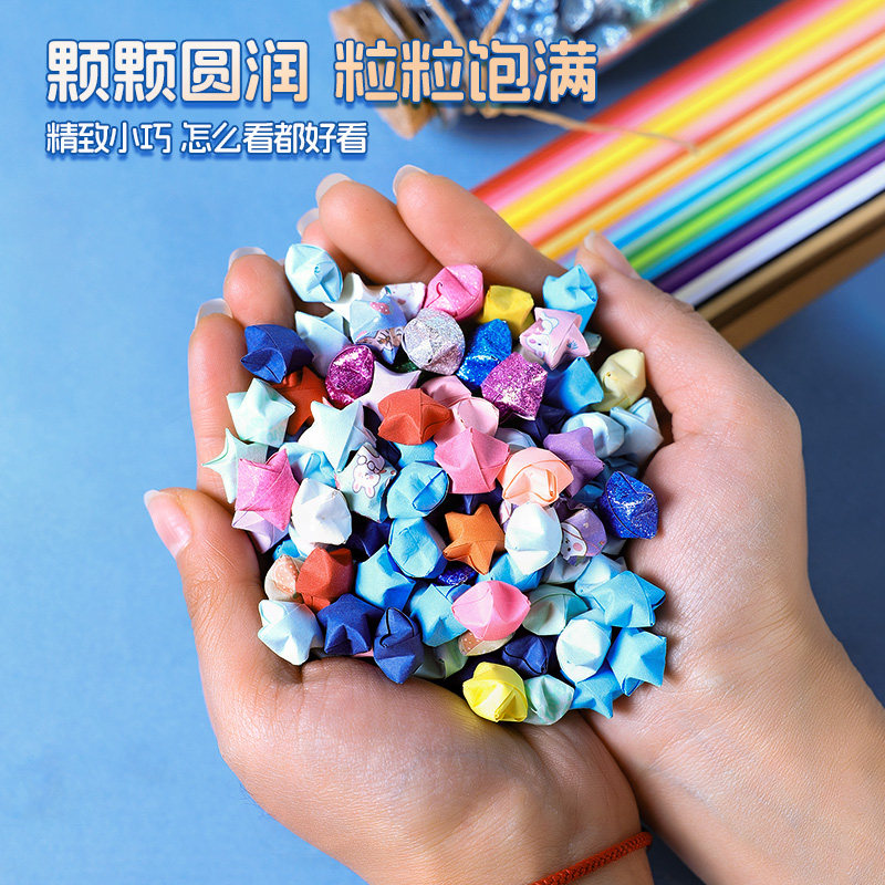 📚 宅小仙折星星纸玻璃瓶夜光发光的五角星马卡龙色手工叠星星纸许愿