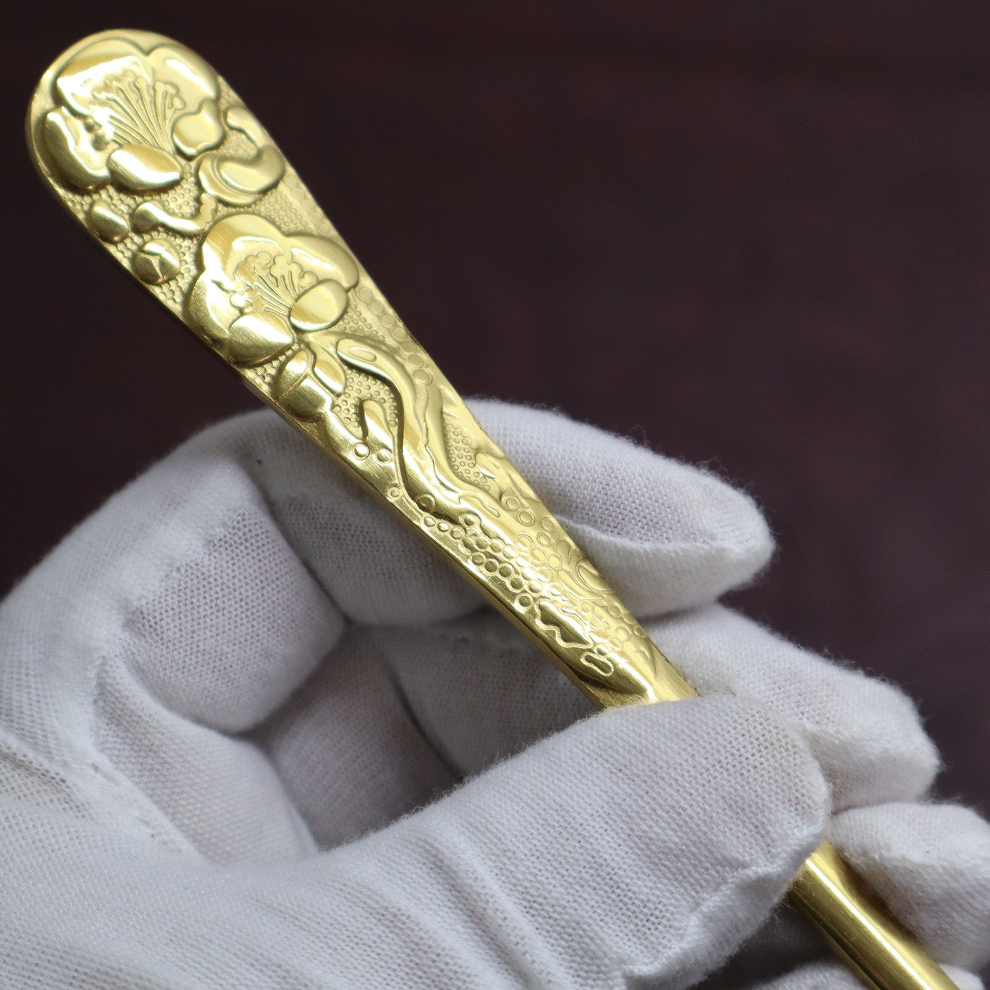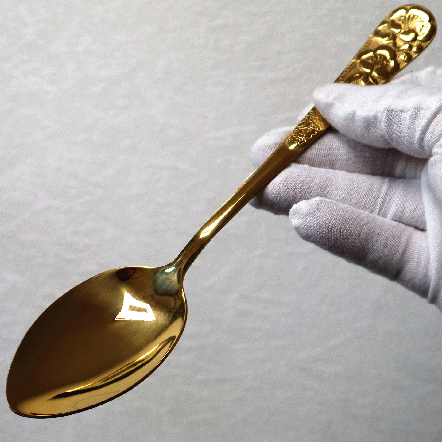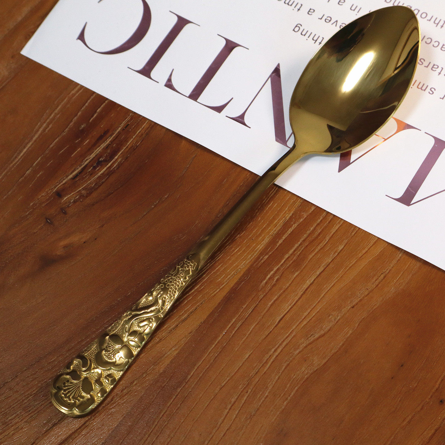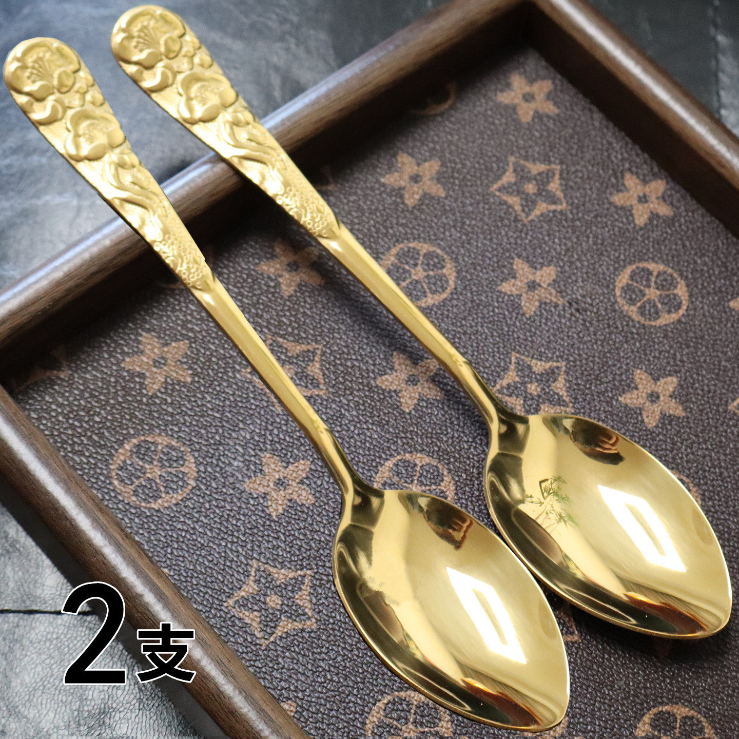 📚 2支 加厚雕花柄不锈钢勺子长柄搅拌勺韩式金色拌饭勺家用西餐汤匙