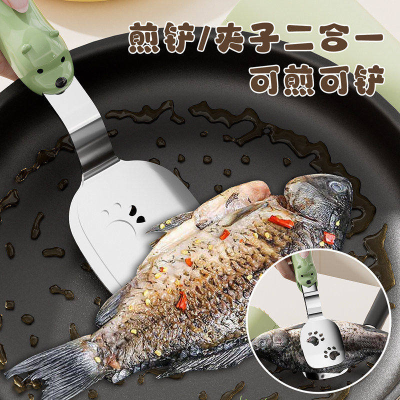 📚 不锈钢小熊煎铲夹子二合一烤肉烧烤煎鱼铲家用厨房专用多功能铲夹