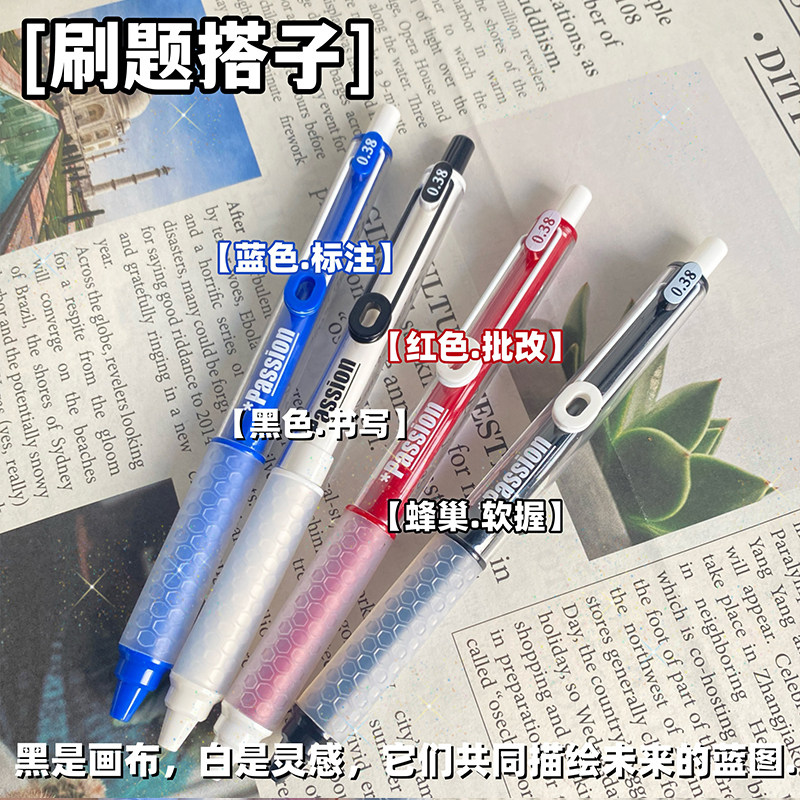 📚 新款刷题笔按动中性笔0.38MM黑红蓝高颜值速干学生考试笔减负软握