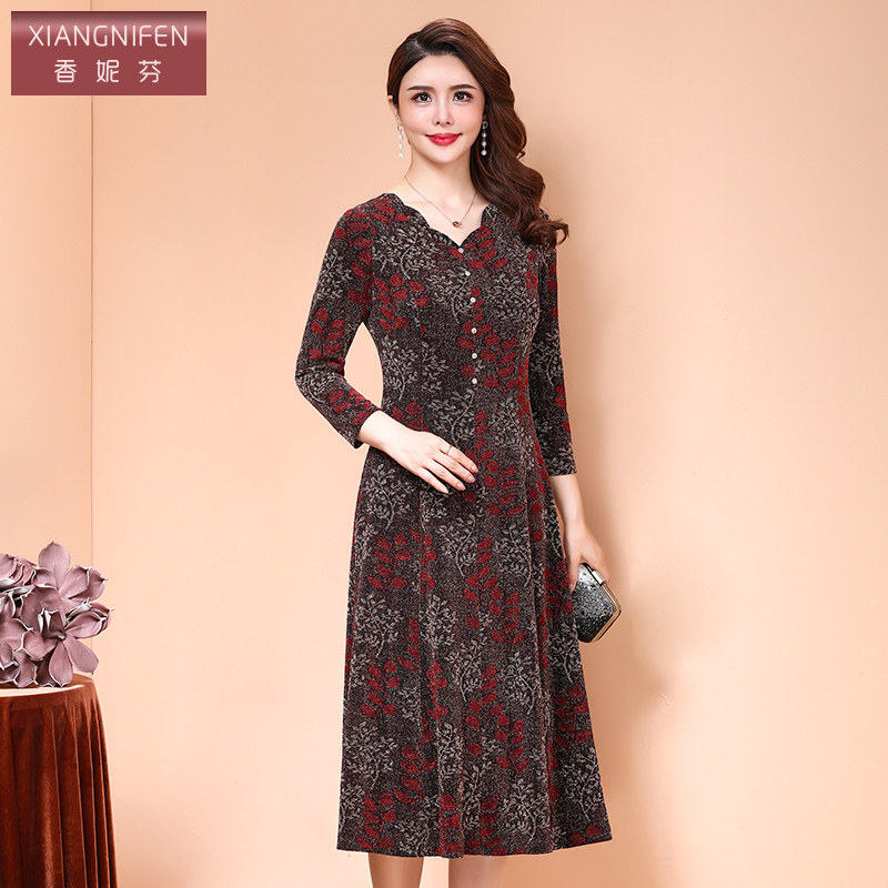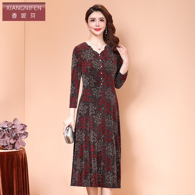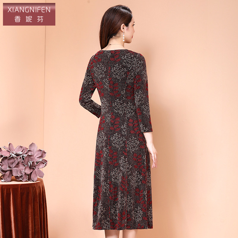 📚 香妮芬中年妈妈连衣裙2025早春新款弹力金线中长裙气质显瘦裙子女
