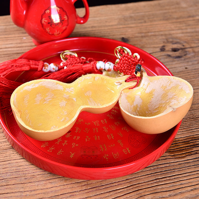 📚 中式婚礼合卺葫芦交杯酒杯中国结婚庆用品道具汉式天然酒真葫芦瓢