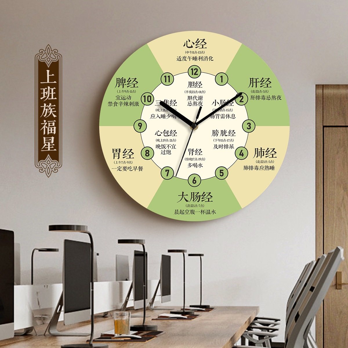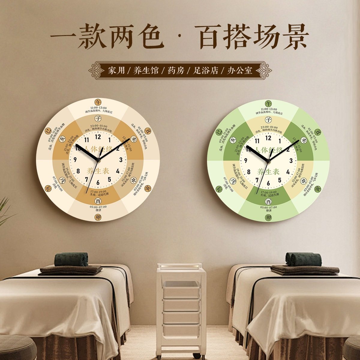 📚 养生挂钟美容院时钟中医推拿养生馆十二时辰子午流注经络静音钟表