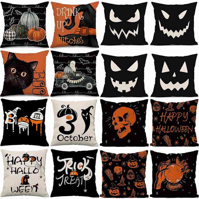 📚 Halloween pillowcase home decoration linen cushion cover垫套