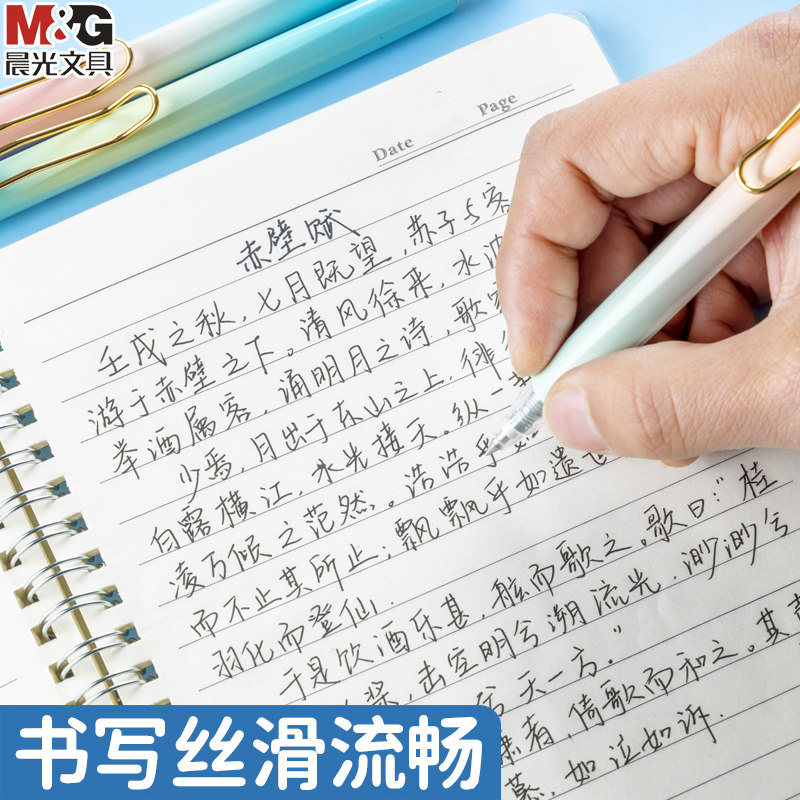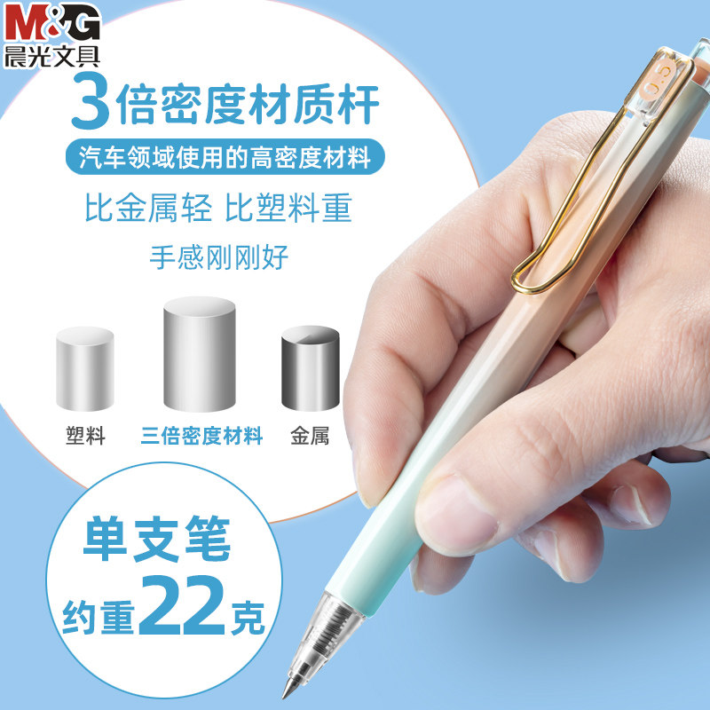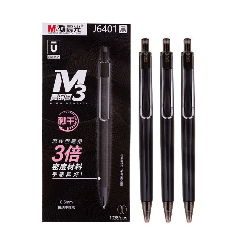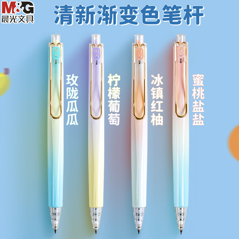 📚 晨光果泡冰茶M3倍高密度按动中性笔0.5子弹头J6402秒干签字笔水笔