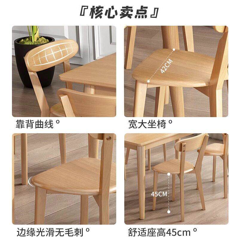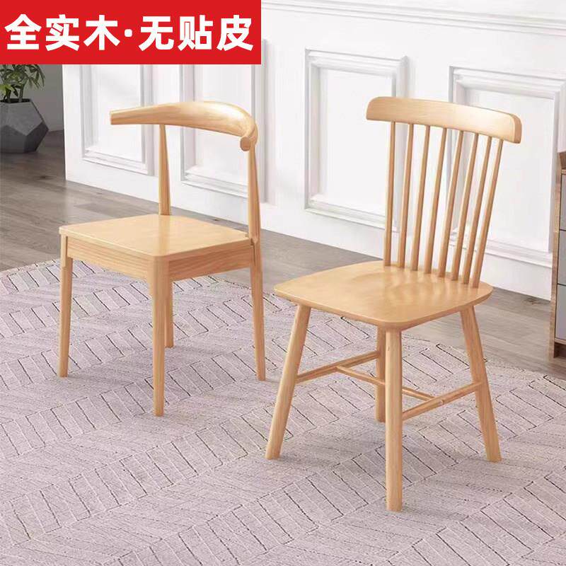 📚 餐椅家用实木轻奢餐桌椅牛角椅客厅吃饭木椅子北欧简约餐桌凳长椅