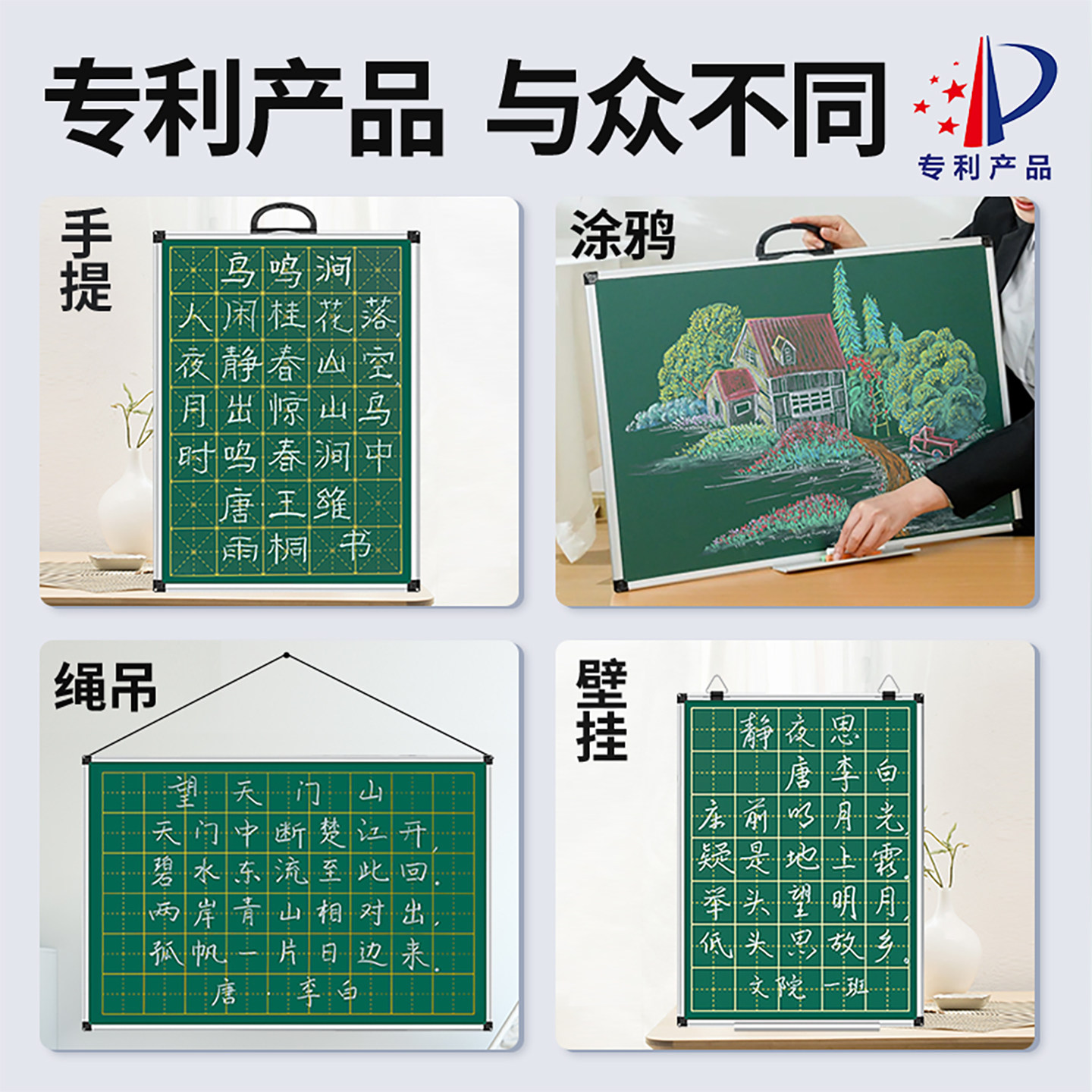 📚 小黑板田字格家用儿童画板师范生练粉笔字可擦磁贴教学绿板挂墙式