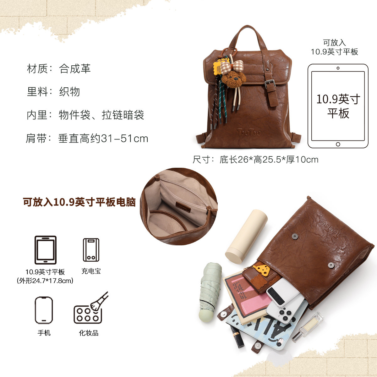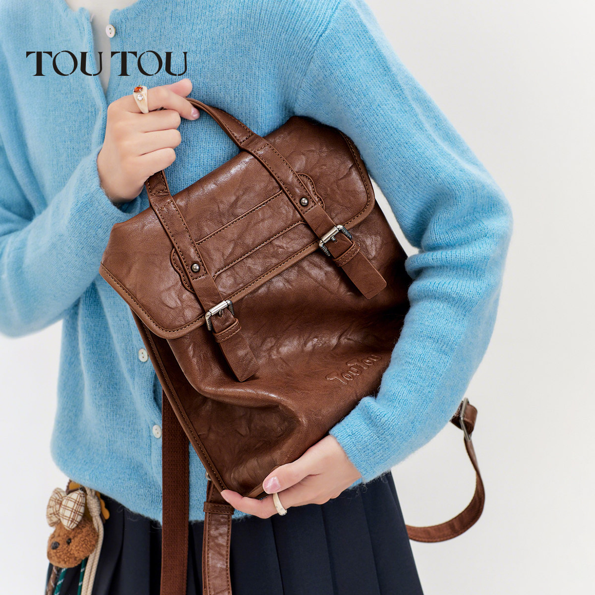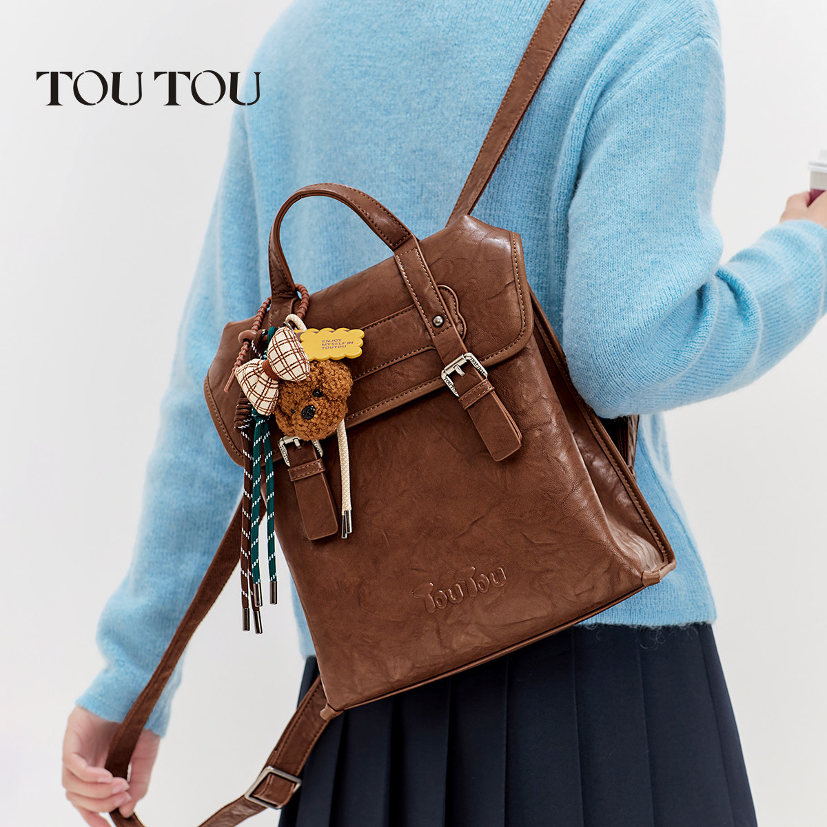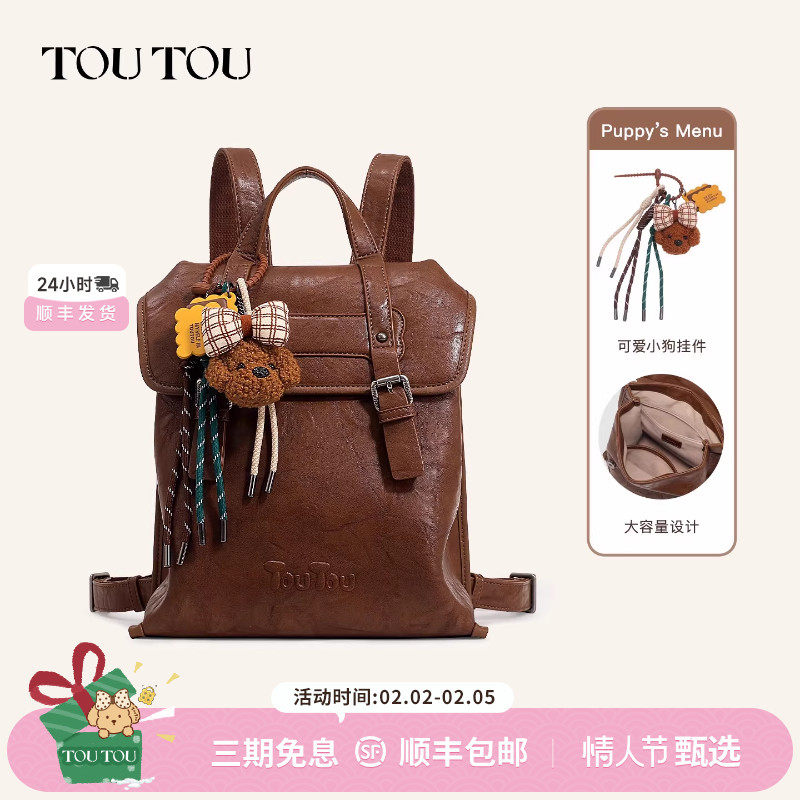 📚 新年礼物TOUTOU仿植鞣双肩包旅游高颜值大容量背包大学生通勤书包