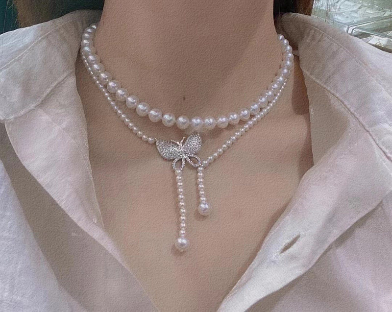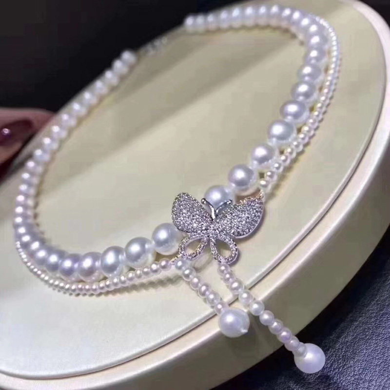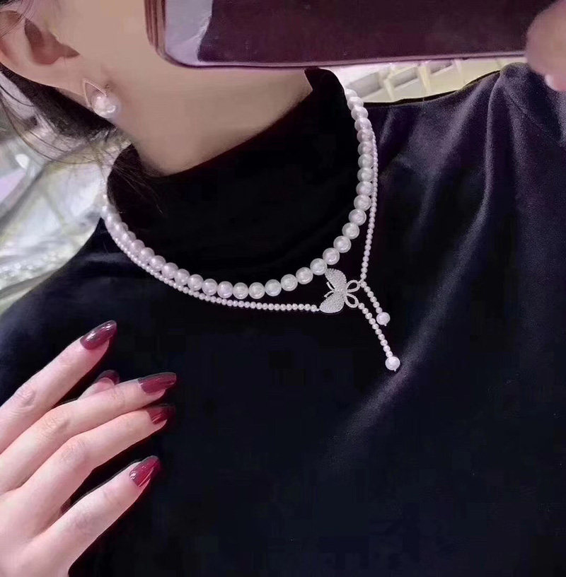 📚 淡水真珍珠项链毛衣链大小双层多层锁骨链3-8近正圆正品强光