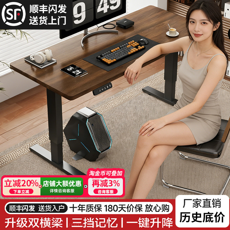 📚 实木电动升降桌电脑桌台式学生学习书桌卧室家用办公桌长方形桌子