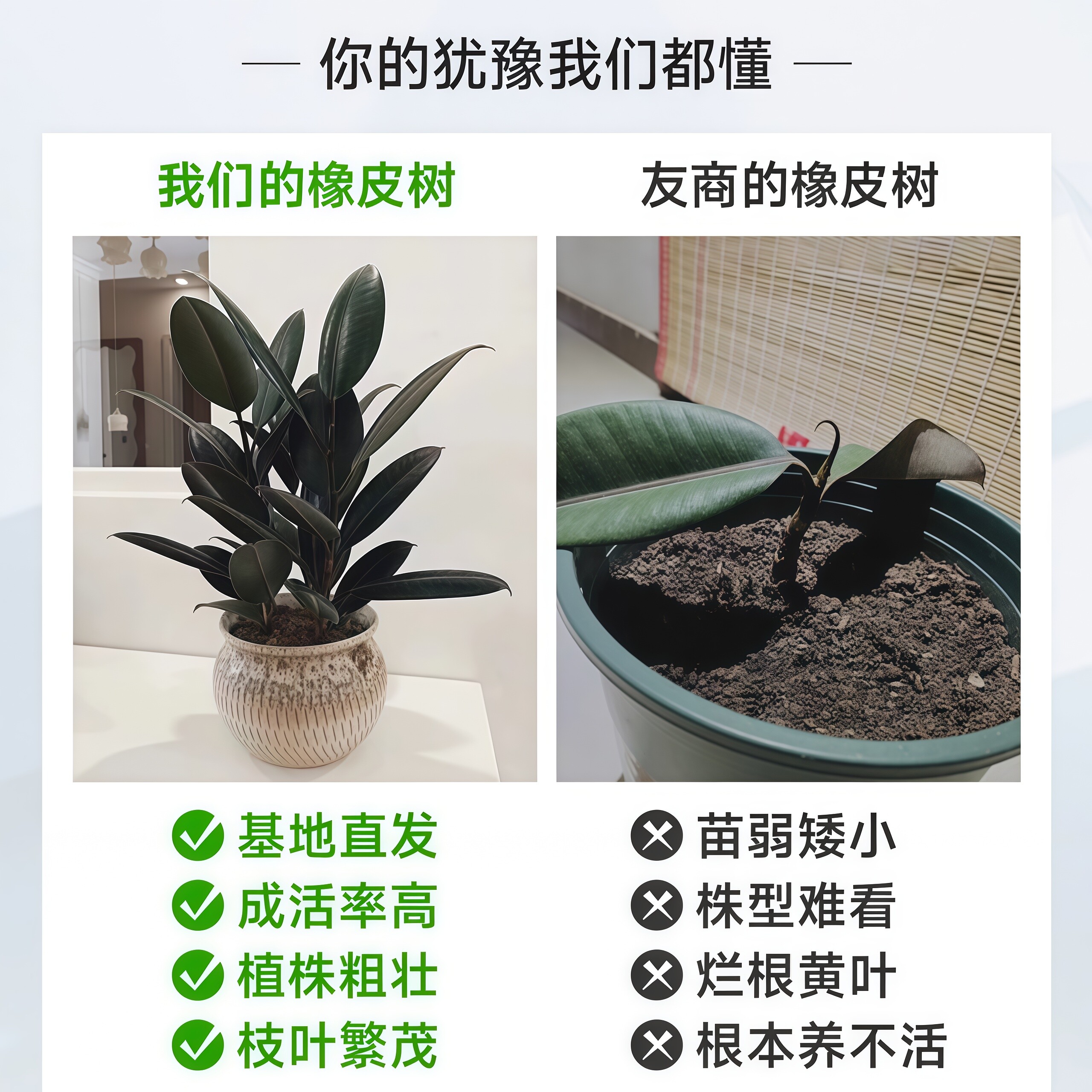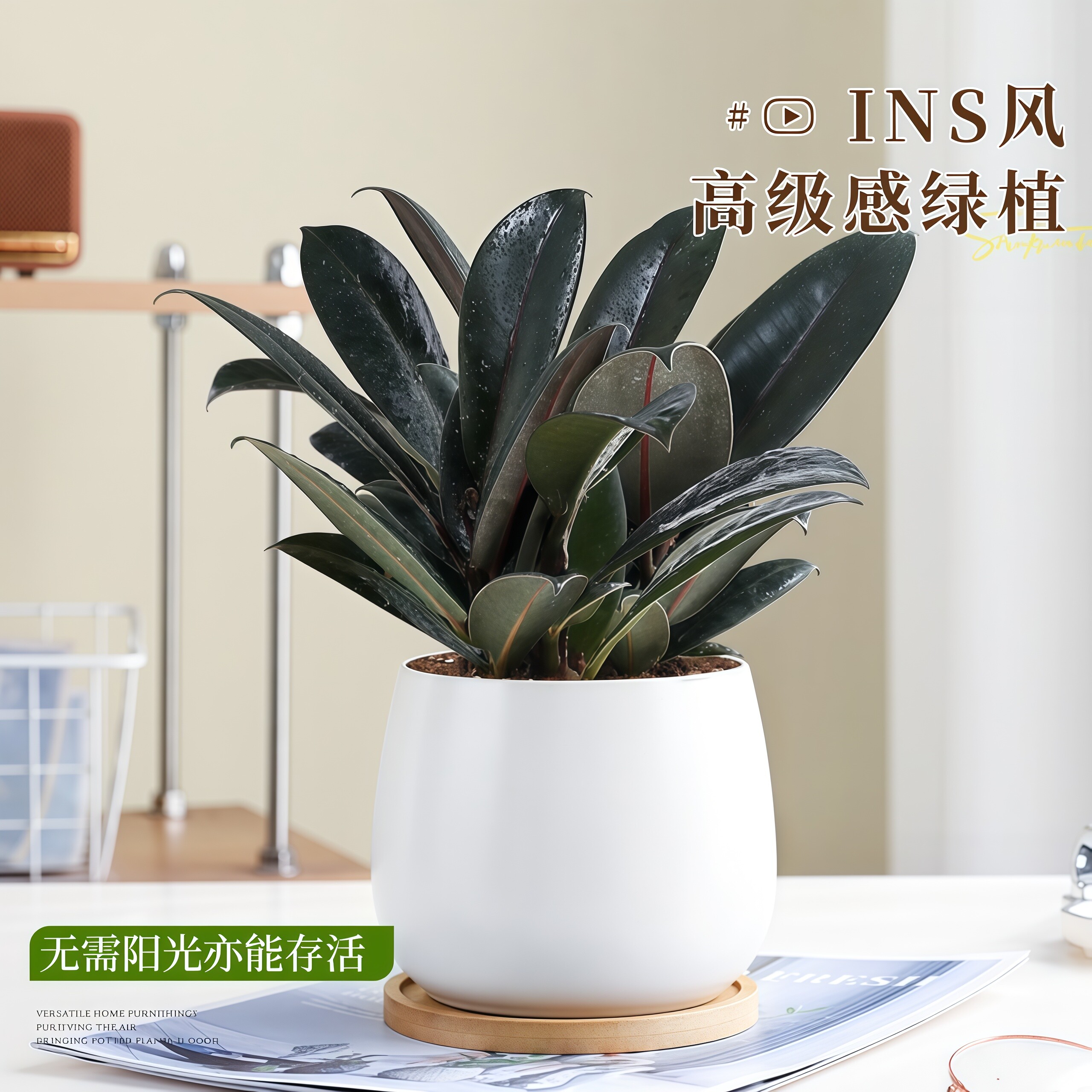 📚 橡皮树室内办公桌盆栽净化空气好养植物黑金刚绿植盆栽四季常青