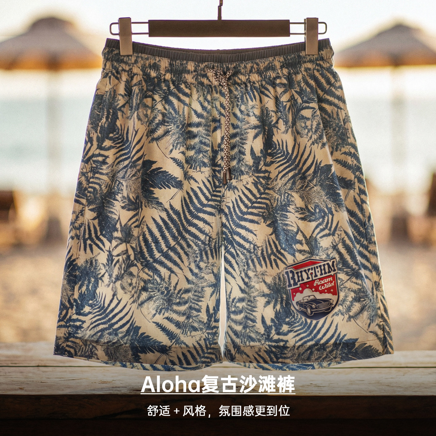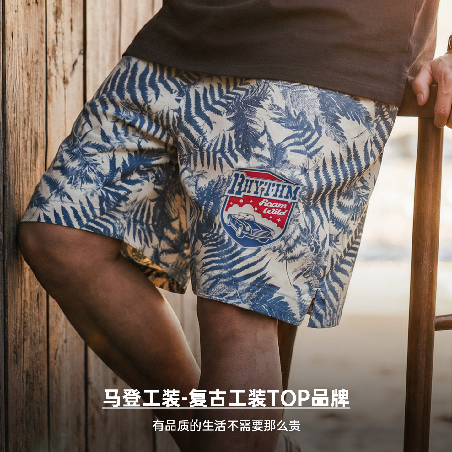 📚 马登工装美式印花沙滩裤海边度假短裤宽松薄款外穿休闲5分裤男夏