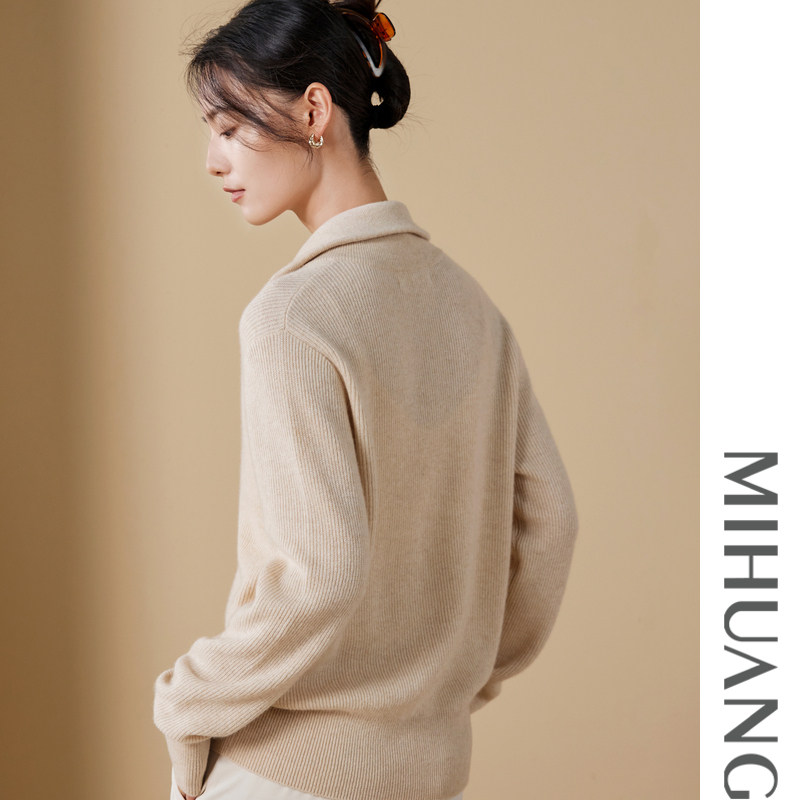 米皇开衫翻领纯色羊绒
