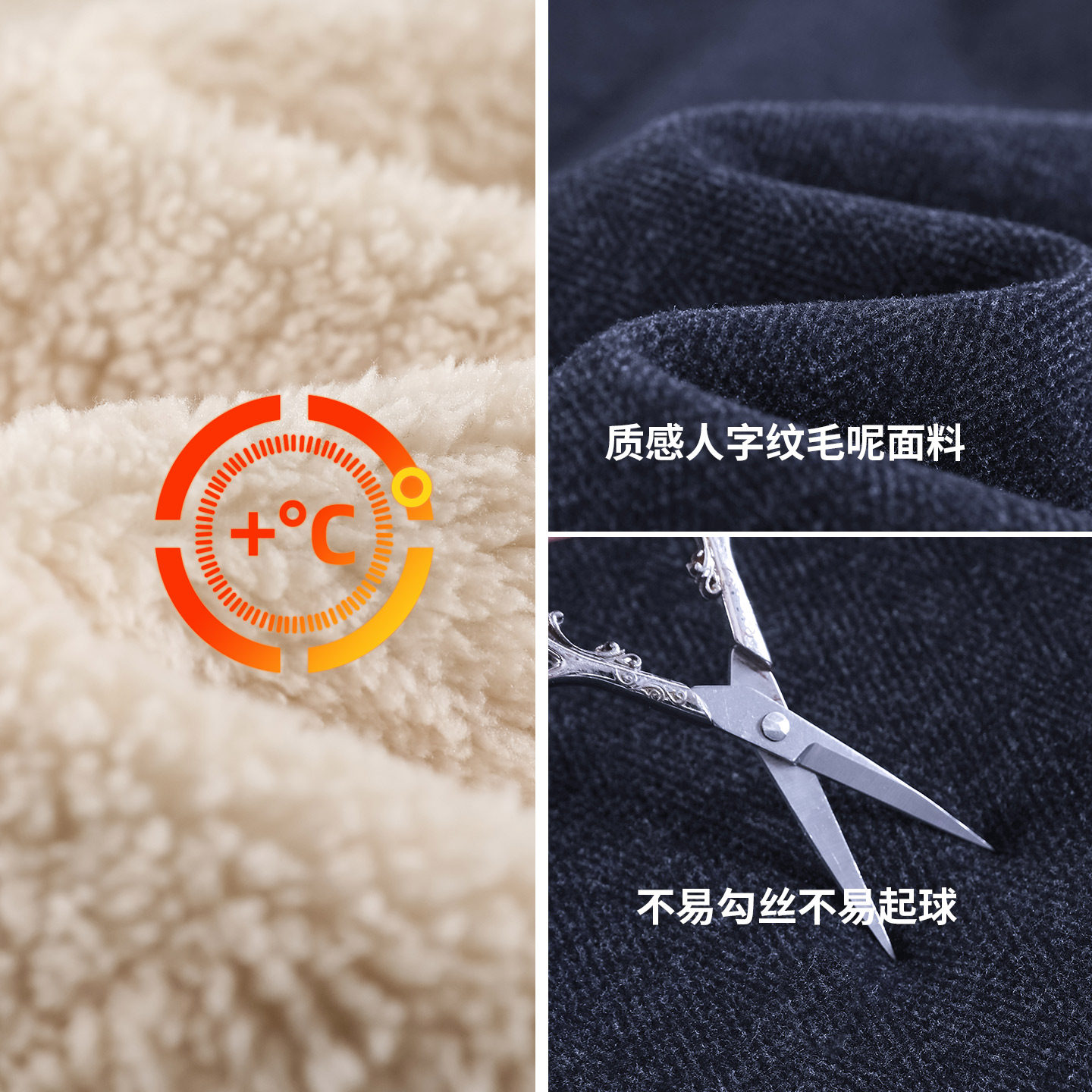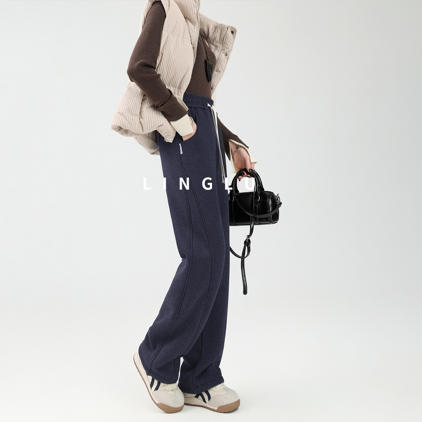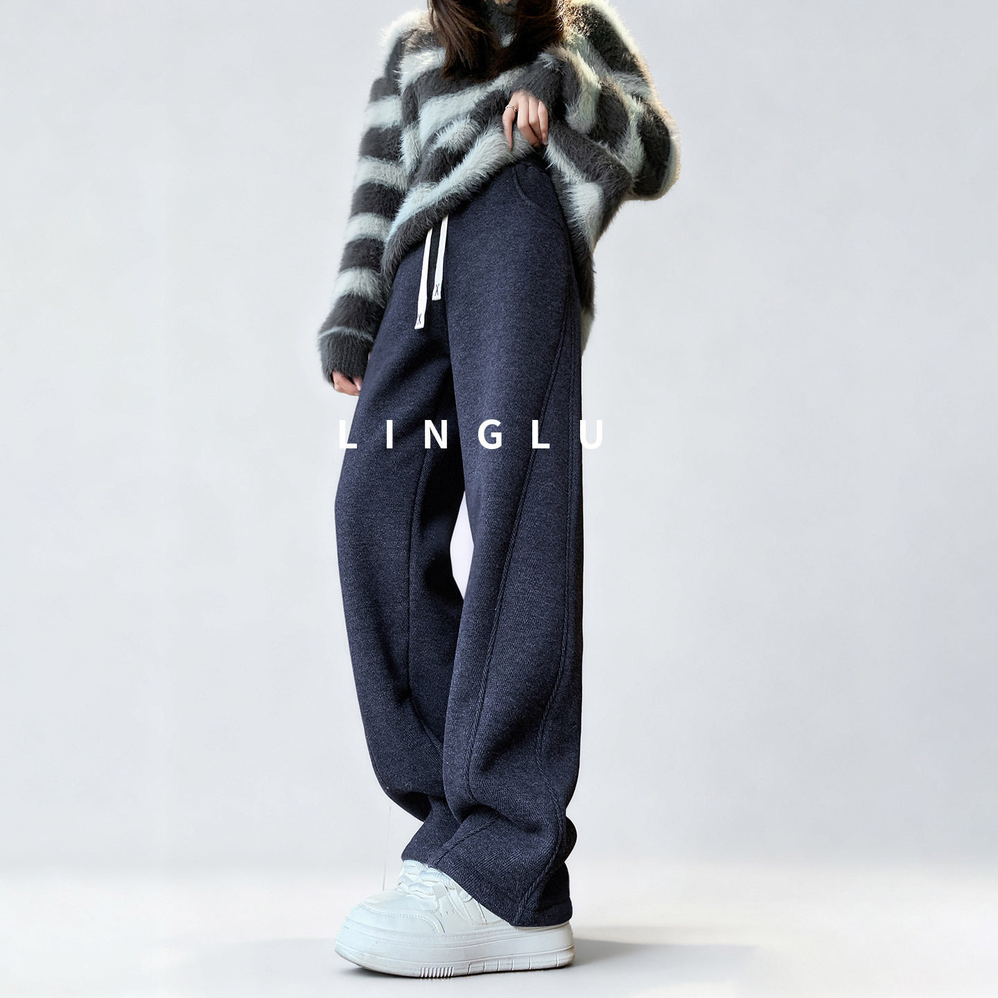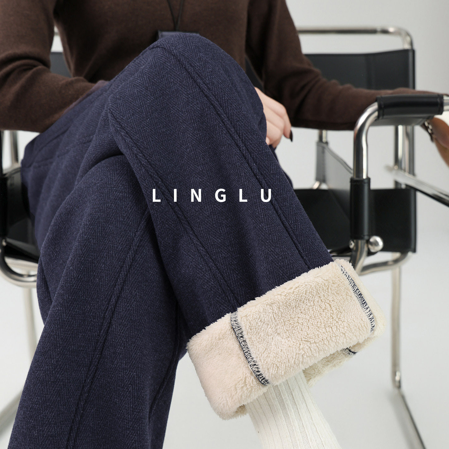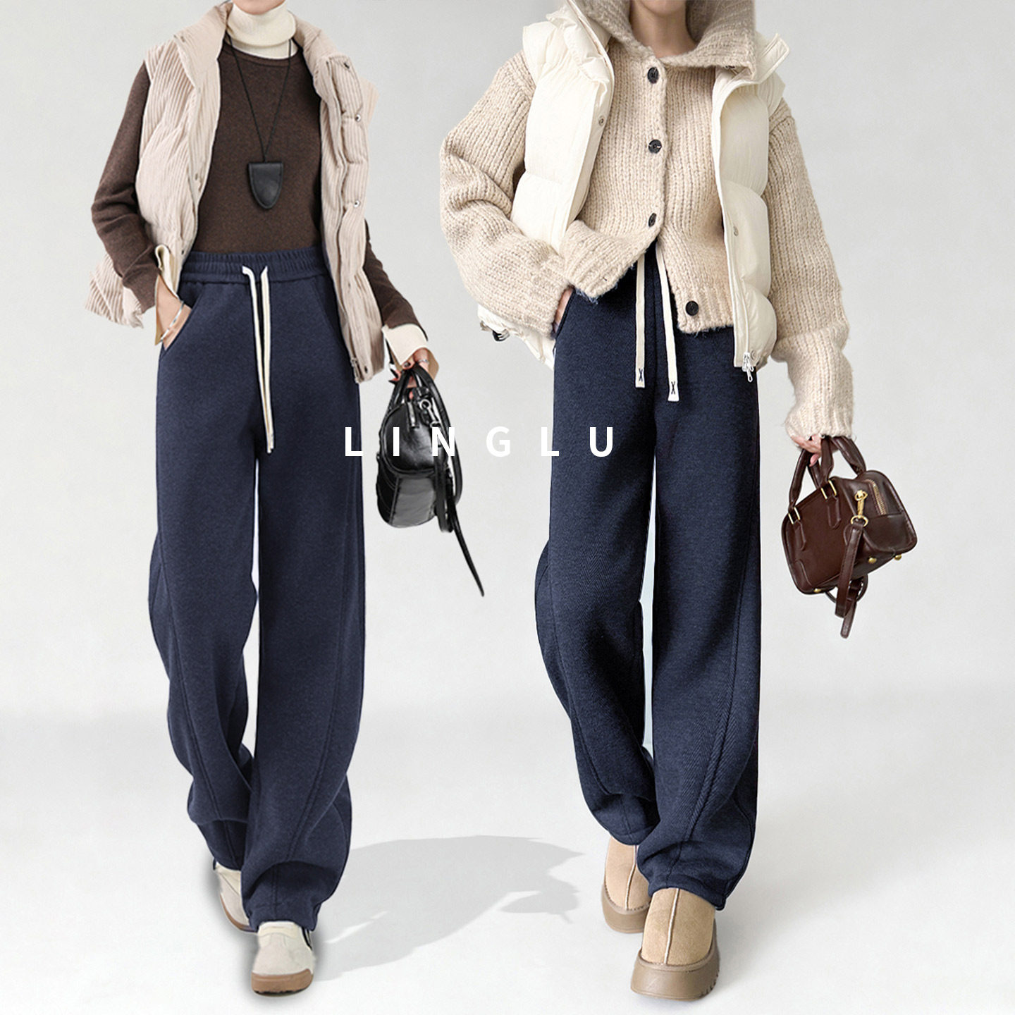 📚 【暖意诞生】藏青色弯刀阔腿裤女冬季加绒加厚羊羔绒棉裤毛呢裤子