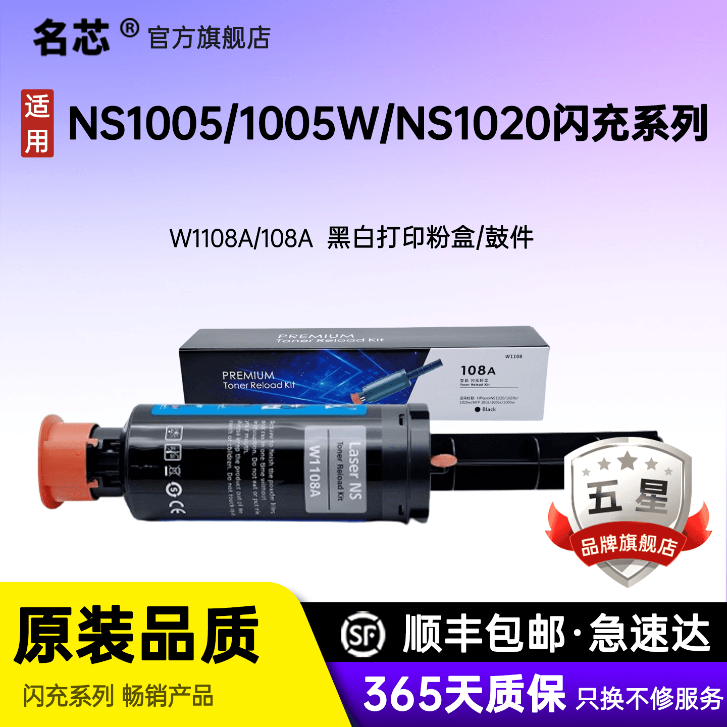 📚 适用HP惠普108A粉盒NS1020c 1020w快充 MFP 1005c 1005W闪充w1108A碳粉Laser打印机硒鼓墨盒W1109A墨粉1005