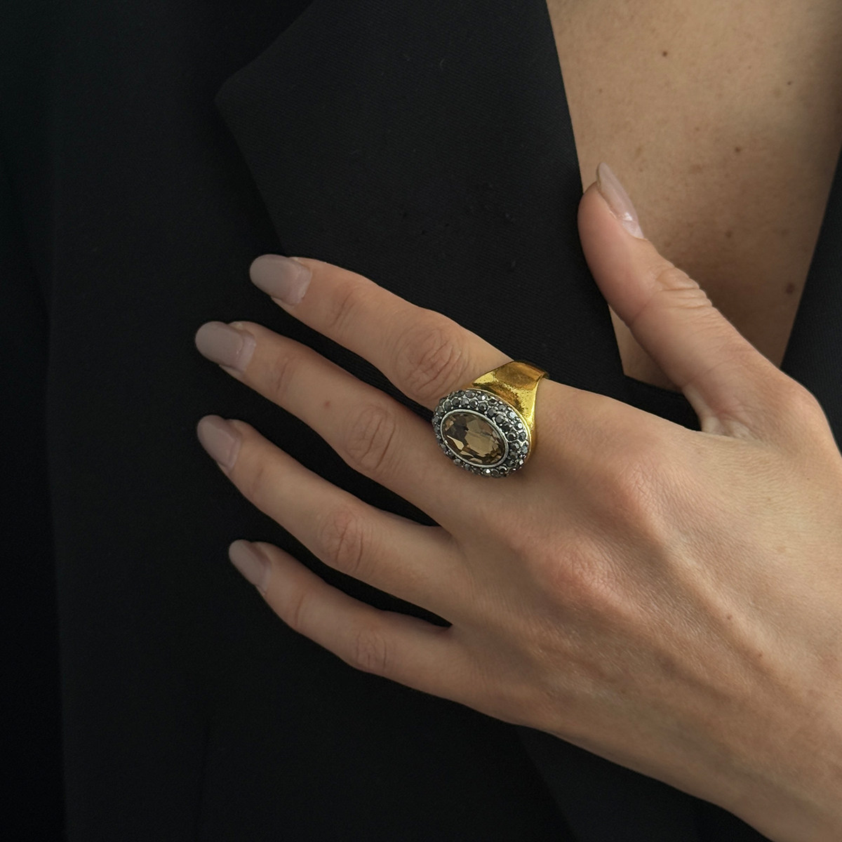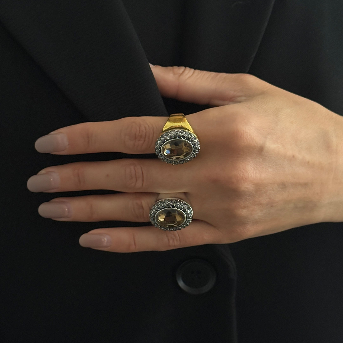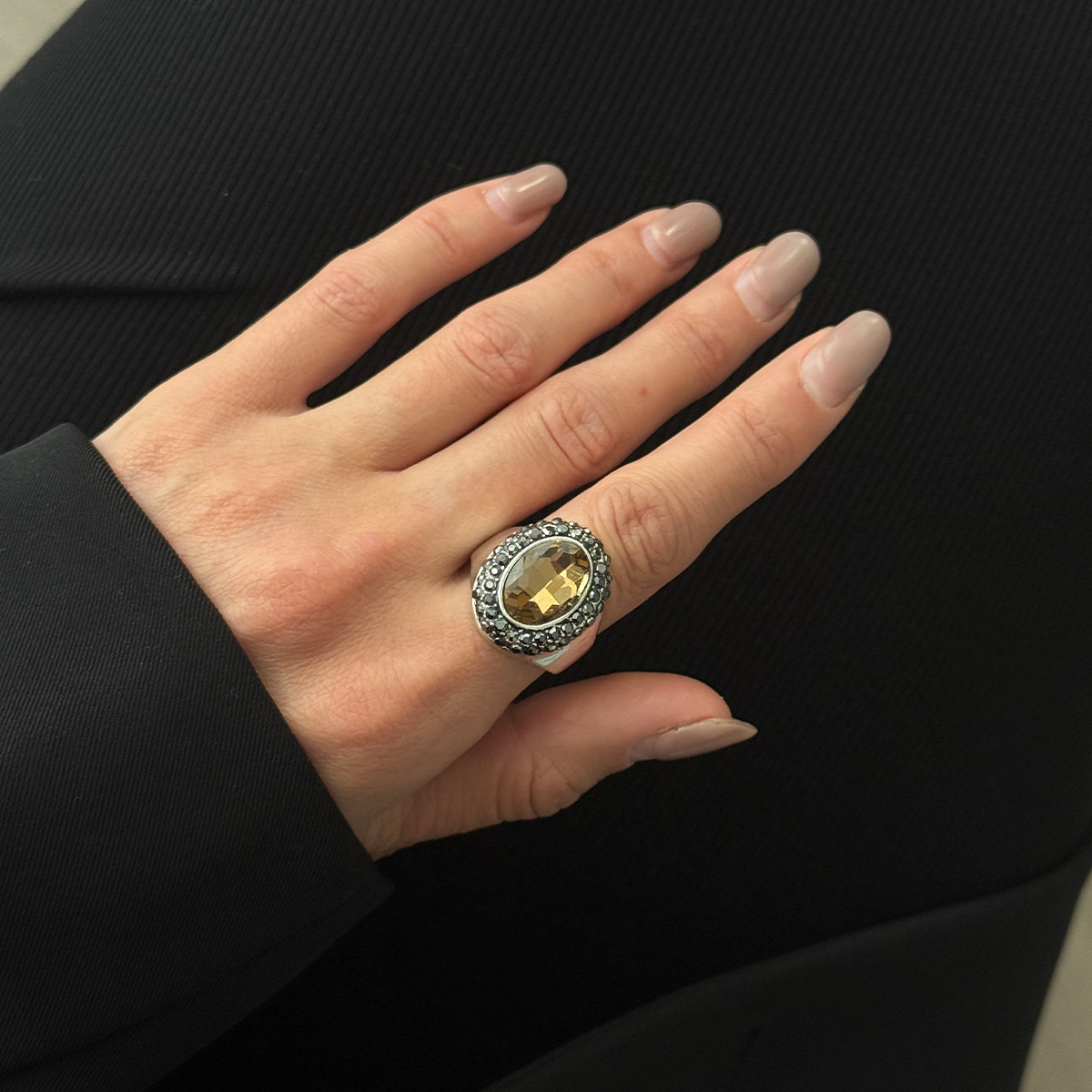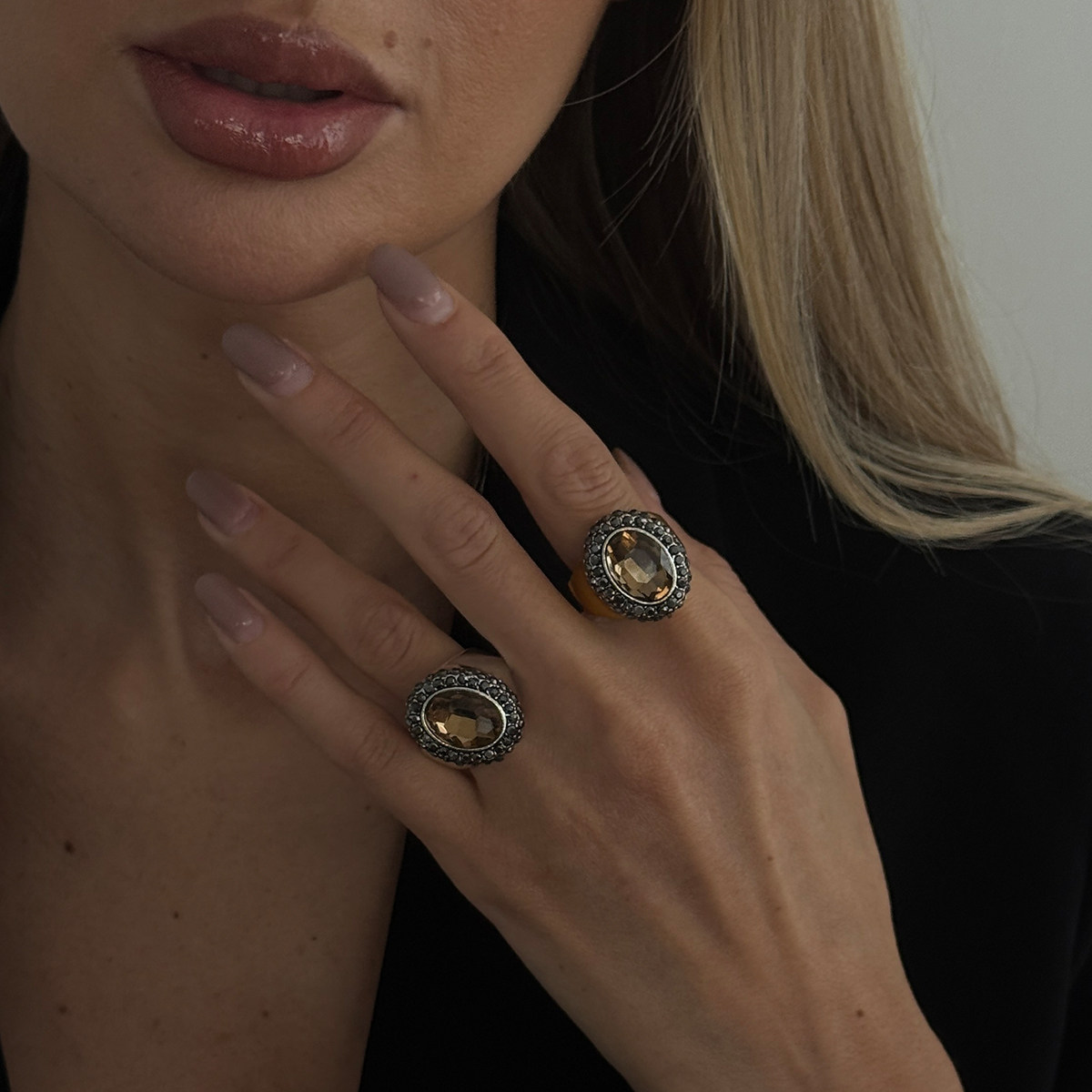 📚 镶钻椭圆形亚克力宝石戒指女复古新潮夸张时尚网红舞台表演配饰品