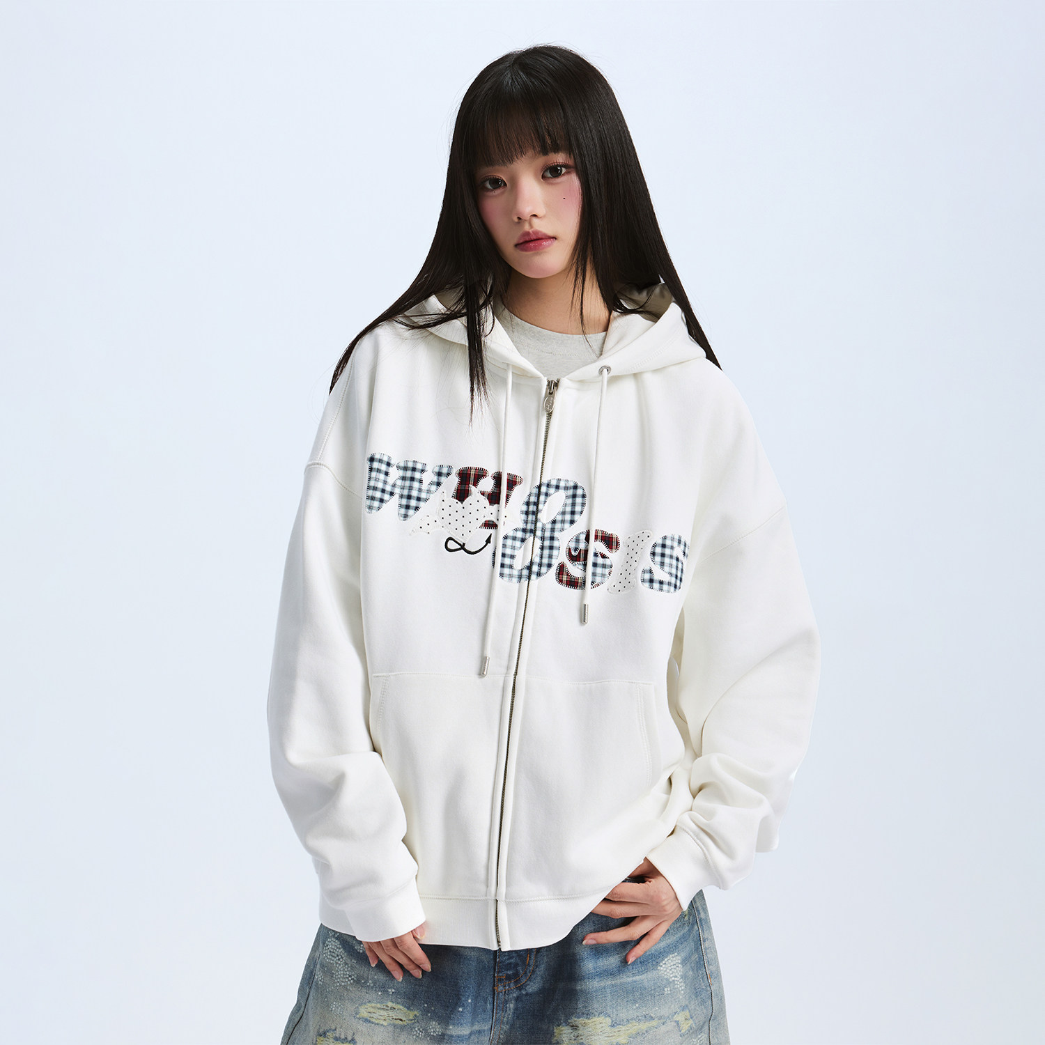 📚 WHOOSIS(不知其名)小恶魔格子贴布拉链帽衫卫衣外套秋冬男女潮