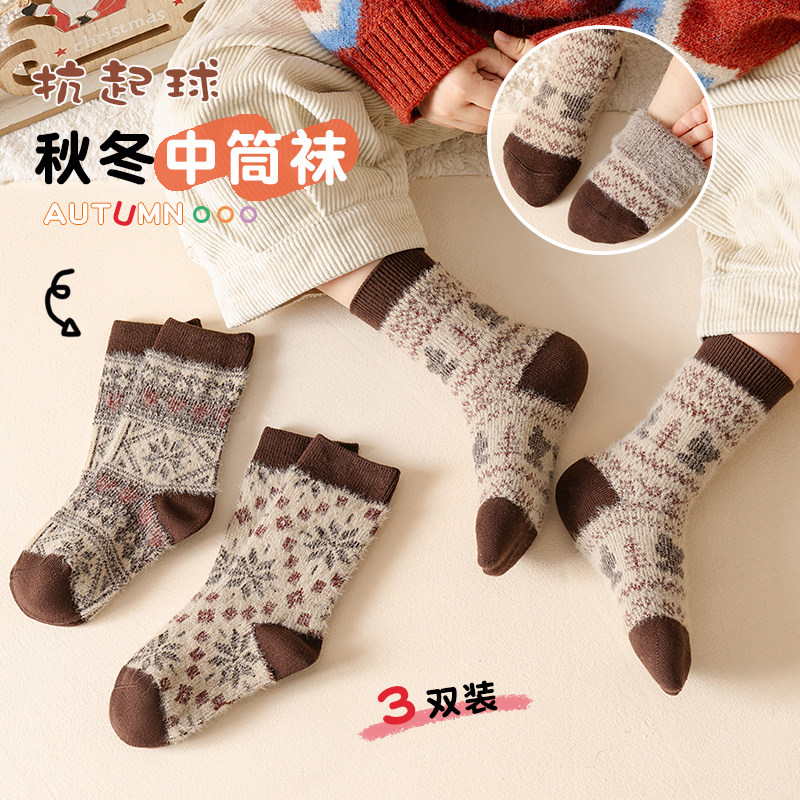 📚 儿童袜子秋冬厚款棉袜加厚保暖中筒男童女童冬季宝宝袜高弹不硌脚