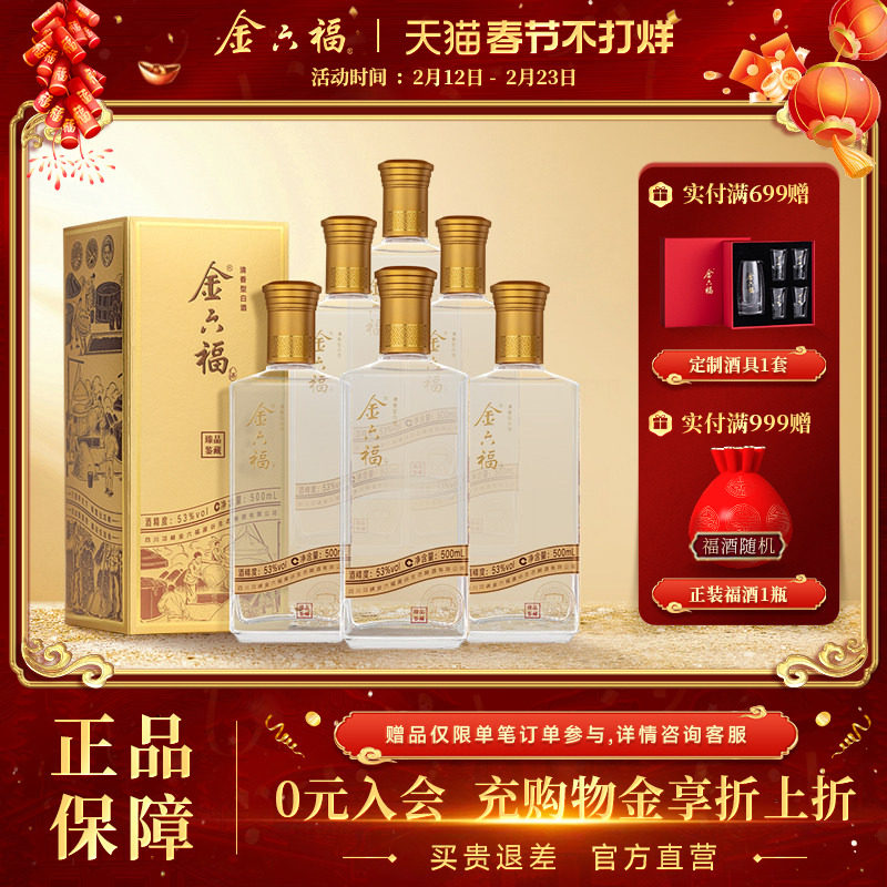 📚 【官方直营】金六福臻品鉴藏53度整箱清香纯粮白酒自饮口粮宴席酒