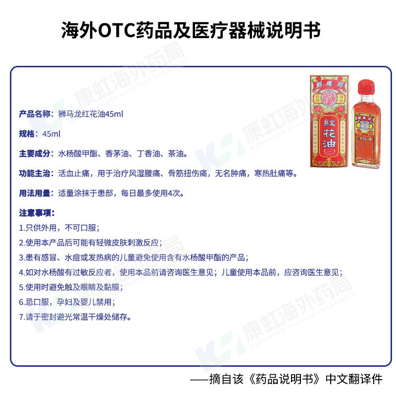 📚 香港狮马龙正红花油45ml活血止痛跌打消肿驱风活络油风湿腰痛